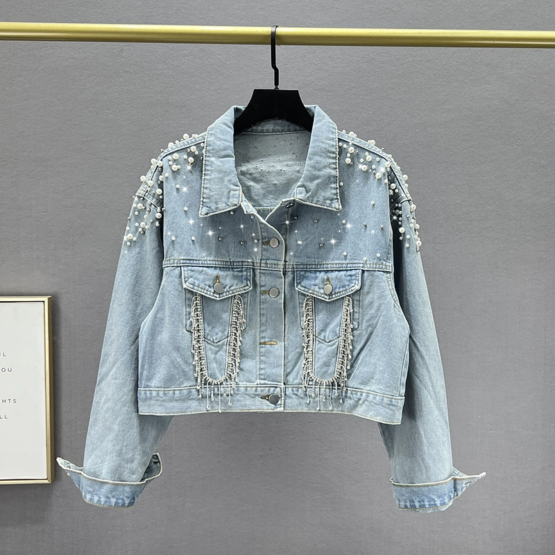 | nameOriginal | Heavy industry tassel beaded denim jacket for women 2024 new spring fit slimming ins European style jacket top |