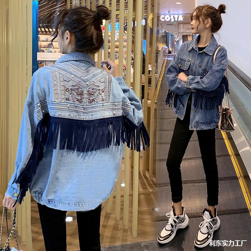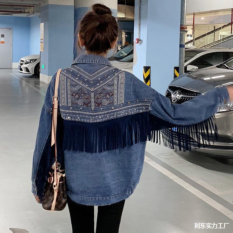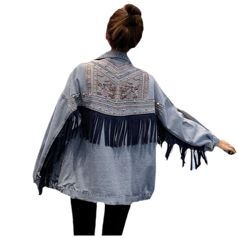 Heavy Industry Tassel Embroidered Denim Coat Women's Spring and Autumn 2024 New Retro Ethnic Style Loose Slim Jacket Top