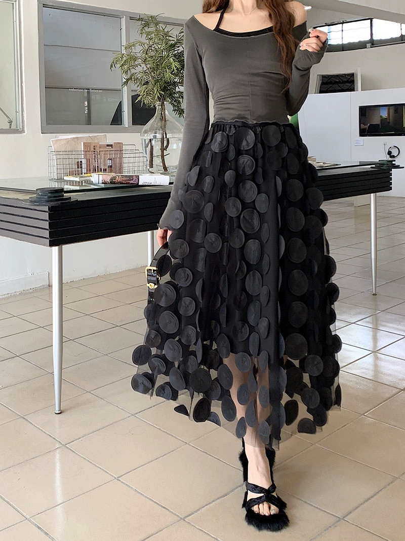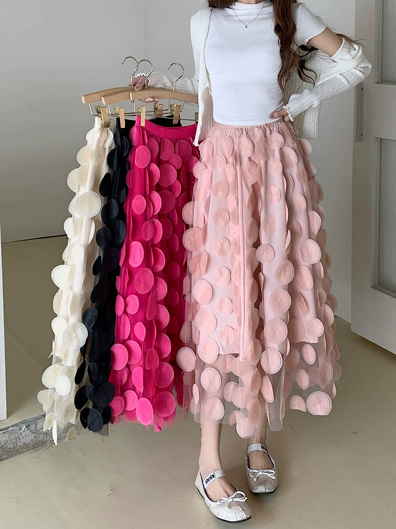 Heavy industry three-dimensional embroidery circle sweet mesh skirt