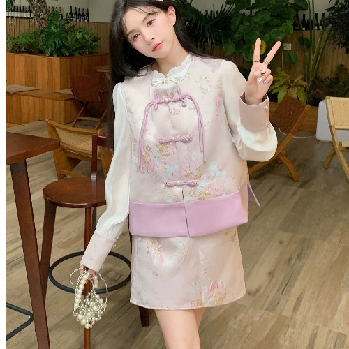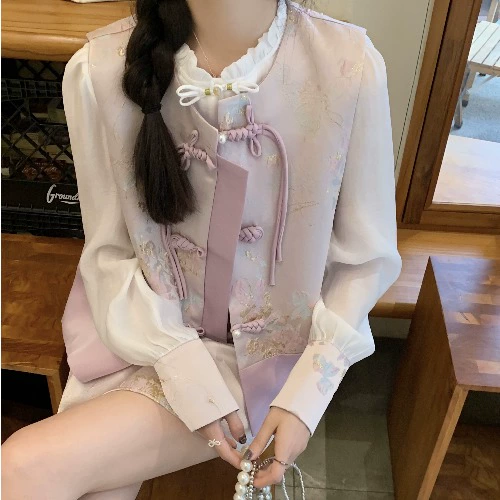 Heavy industry vest layered long-sleeved shirt half buttoned