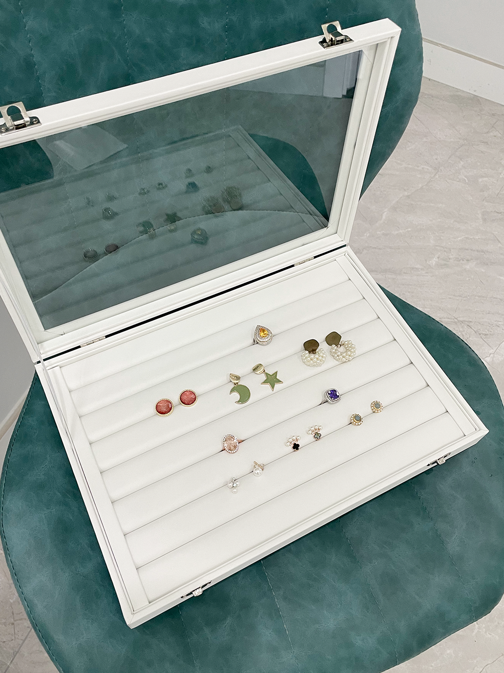Heavy light luxury white PU leather jewelry box large -capacity storage necklace ear ring ring display props
