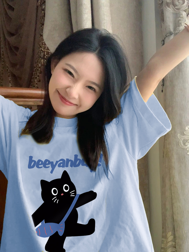| nameOriginal | Heavy ocean blue cartoon breast wear short-sleeved T-shirt |