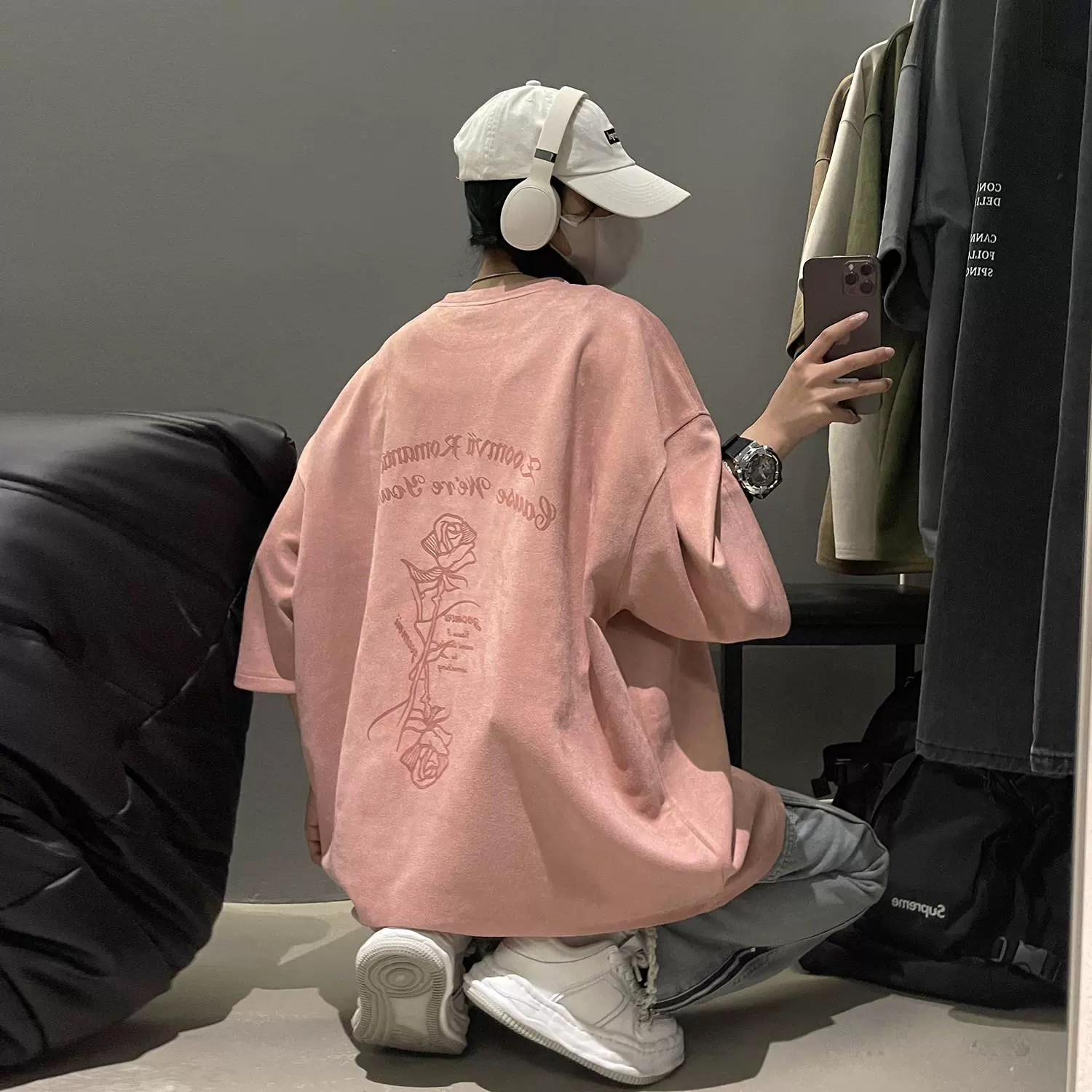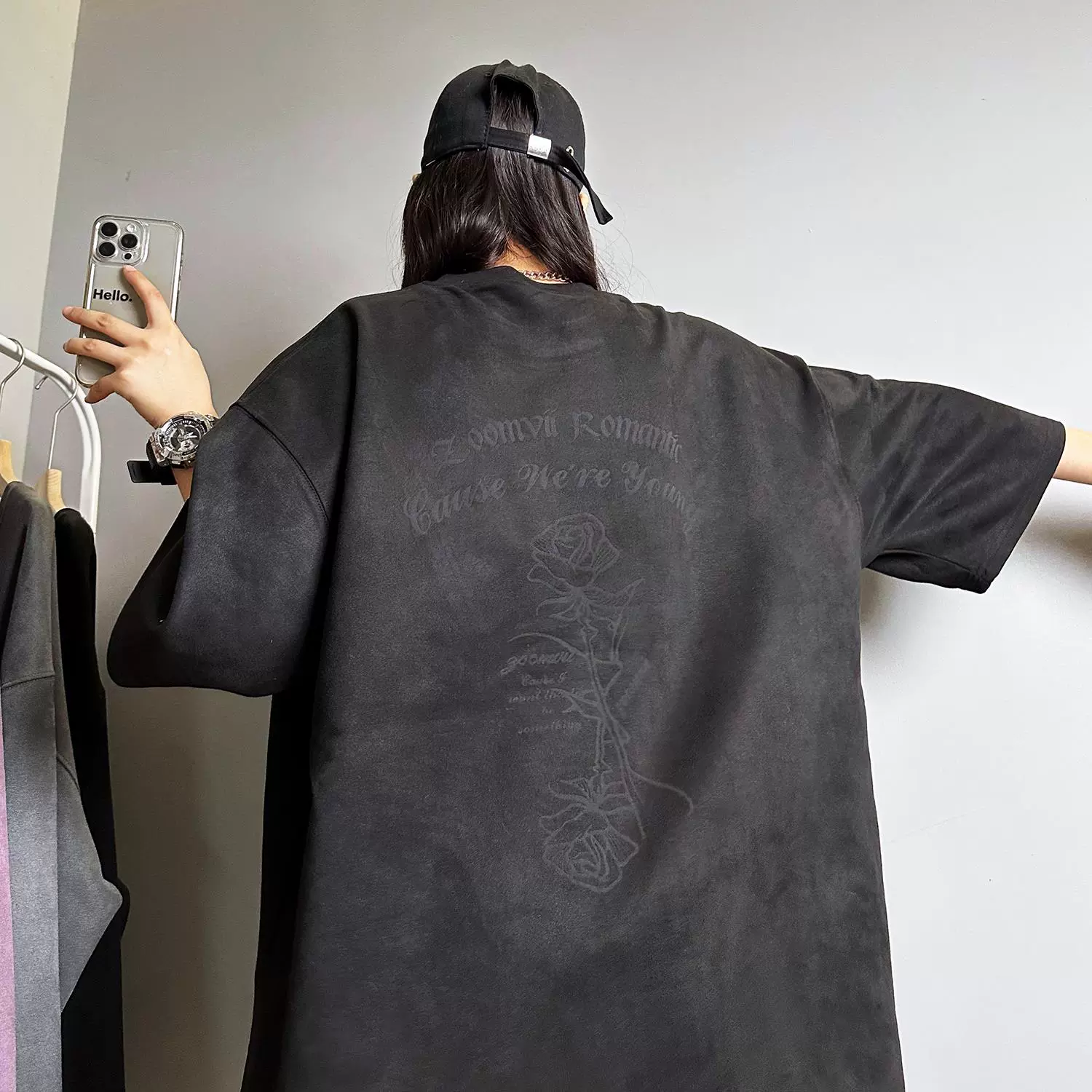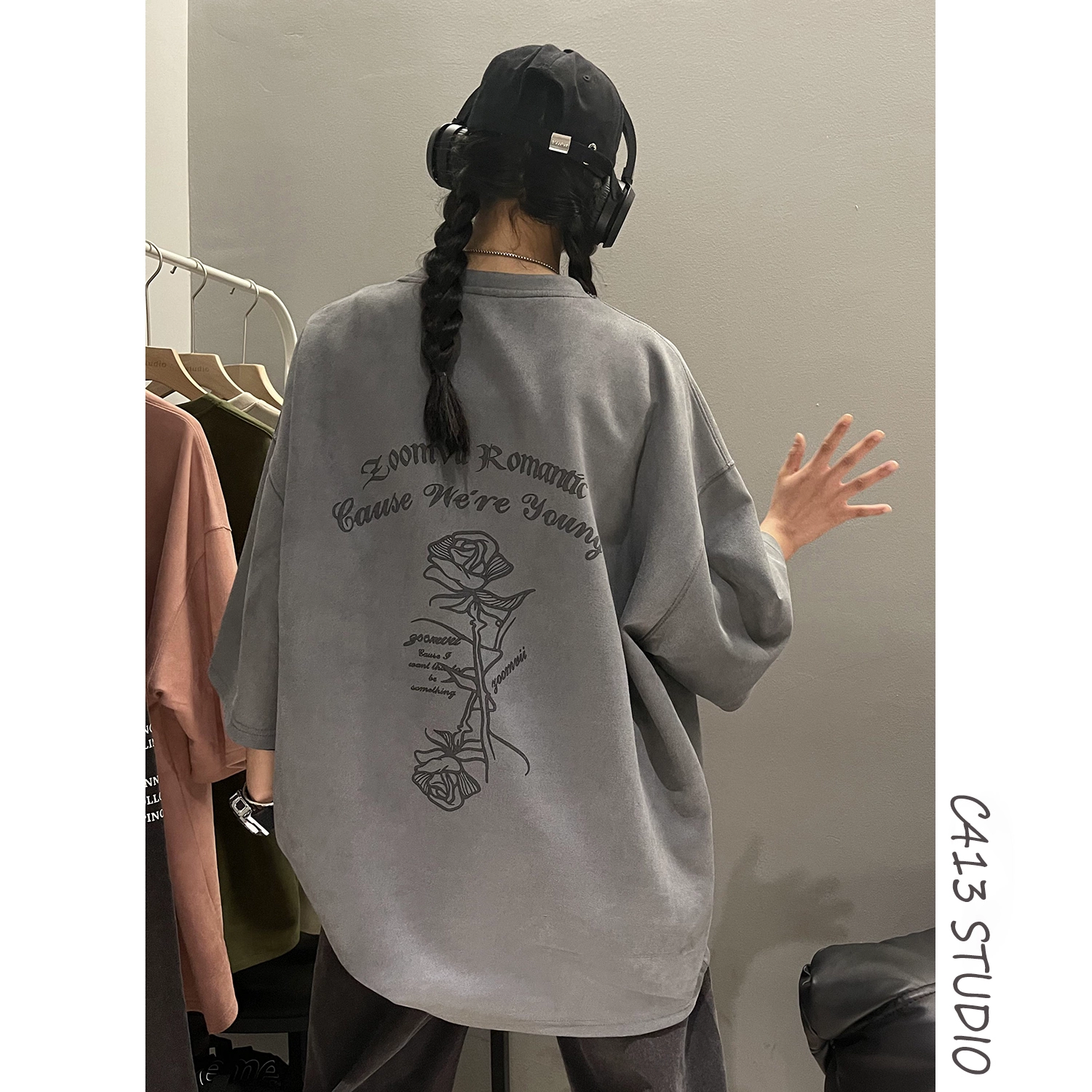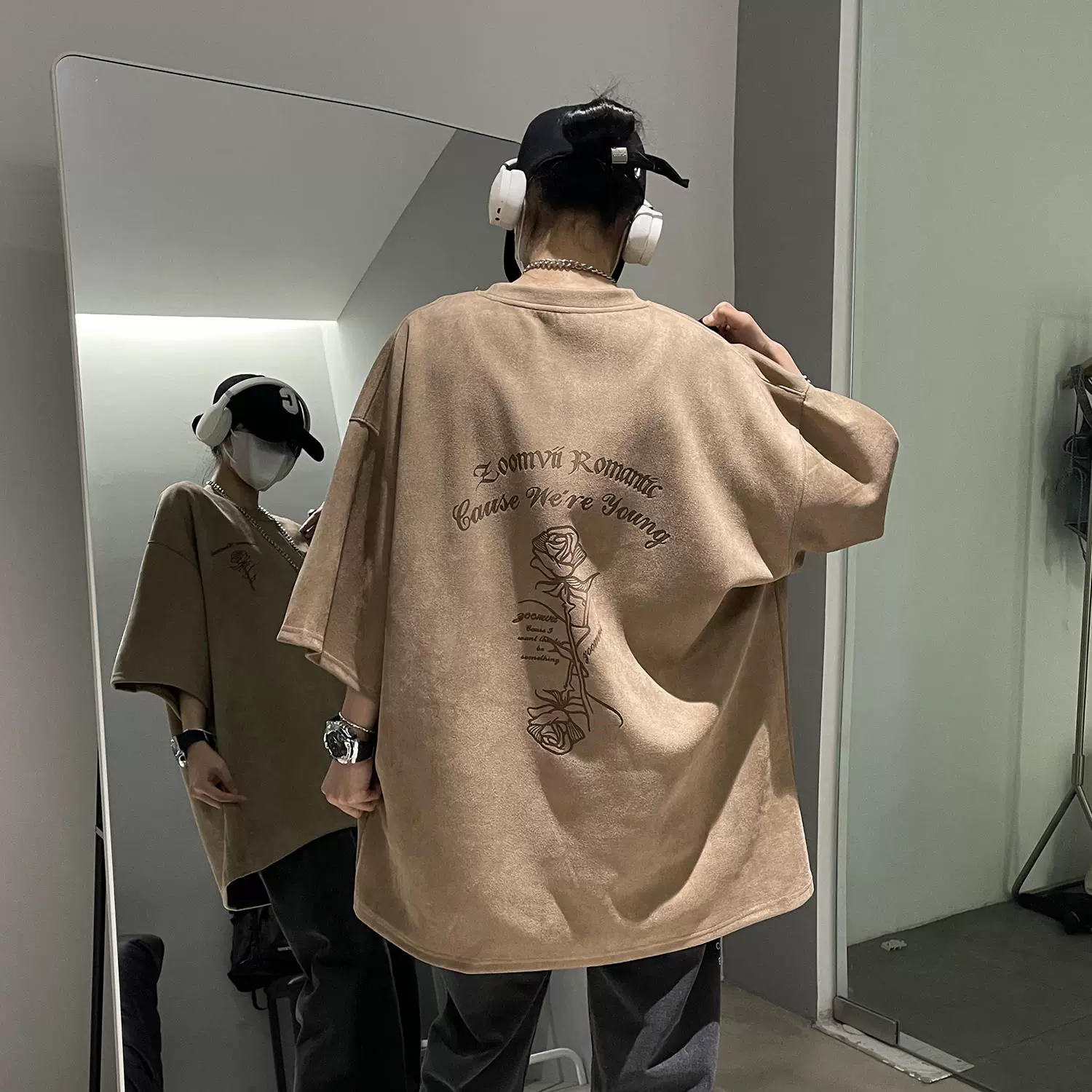 Heavy oversize American high street half-sleeved suede