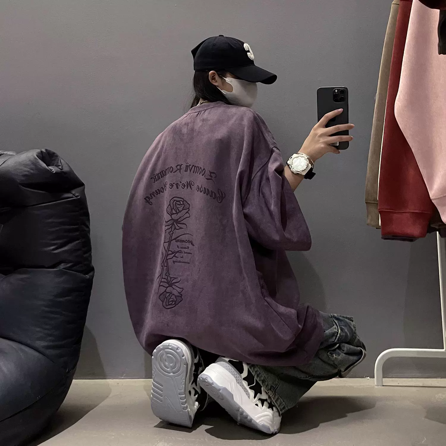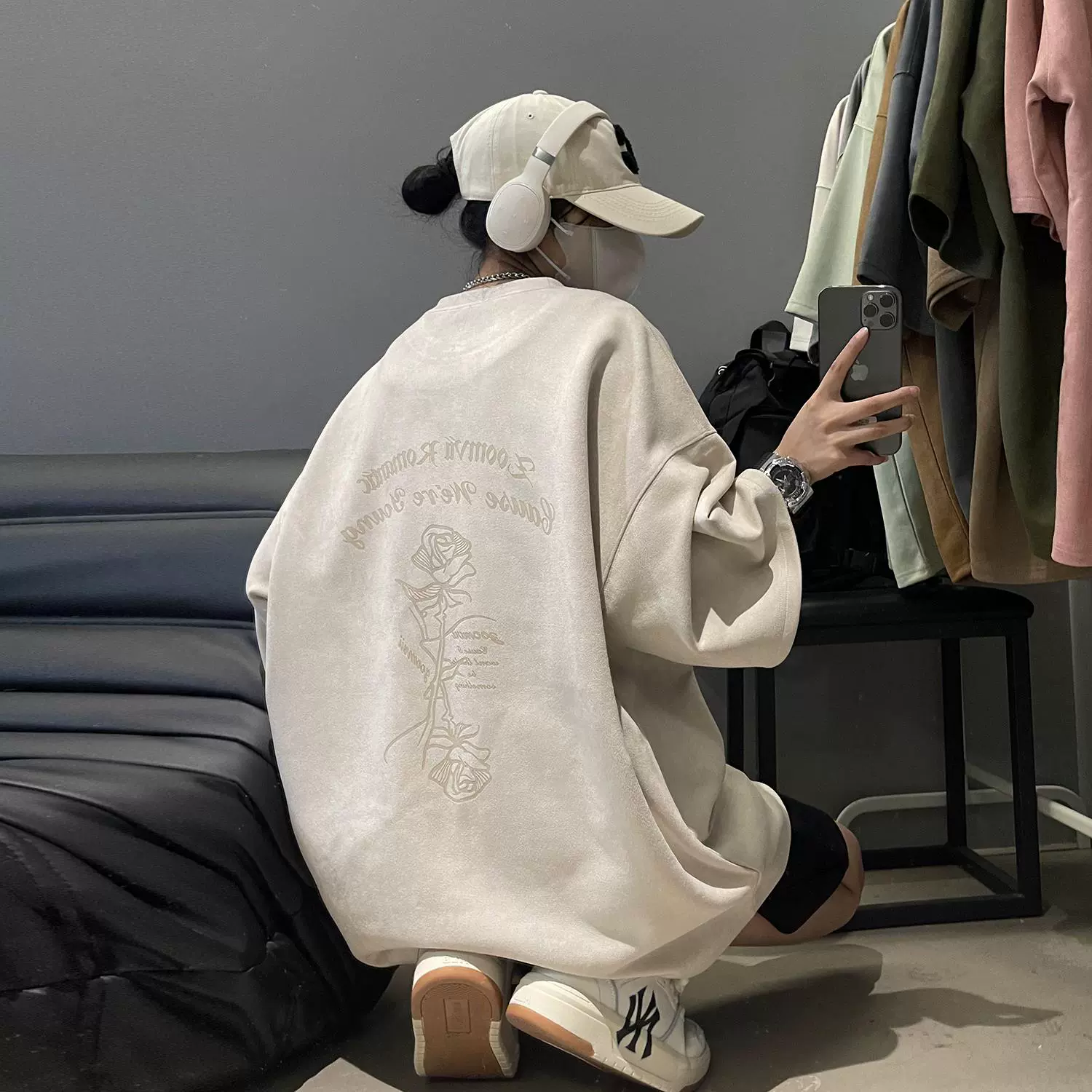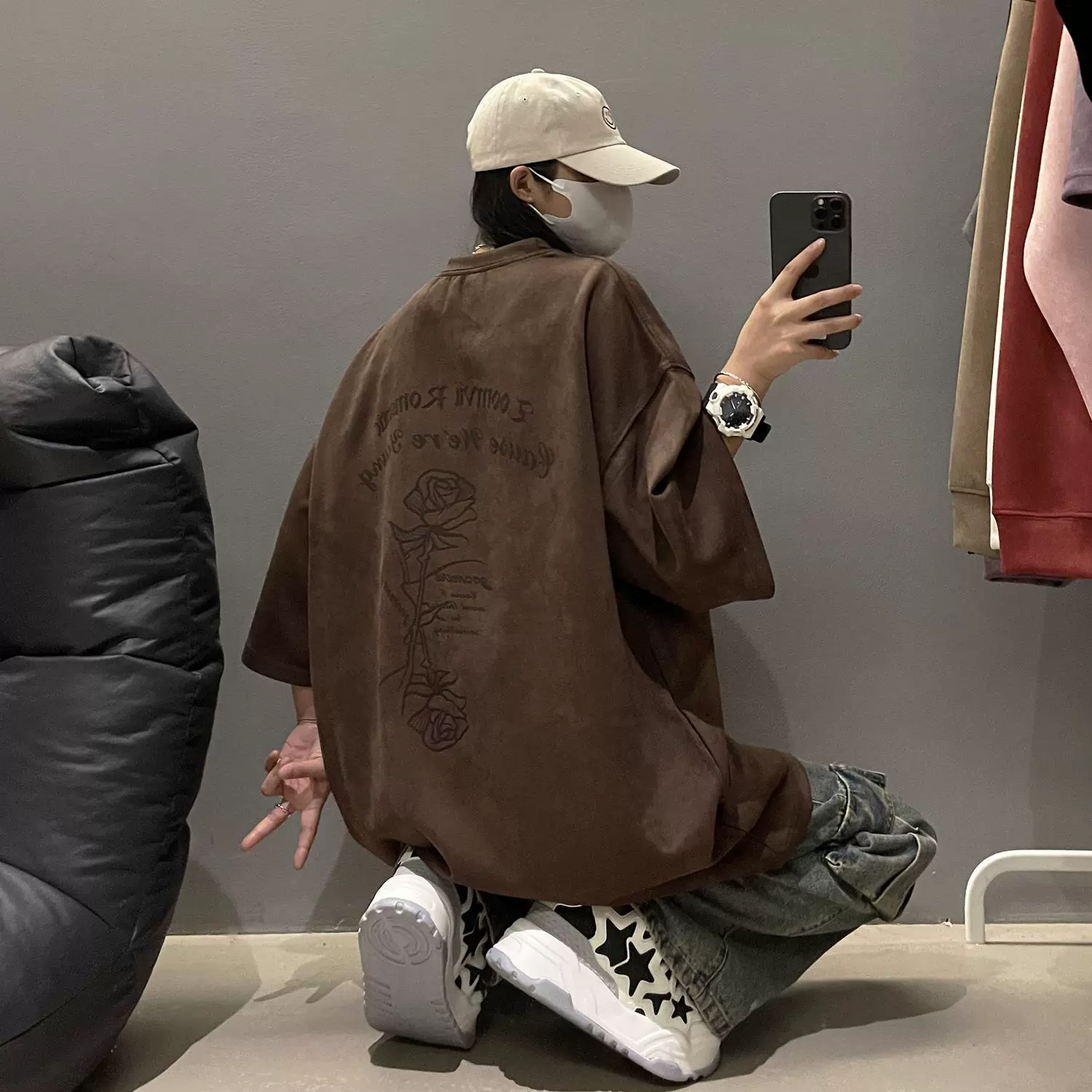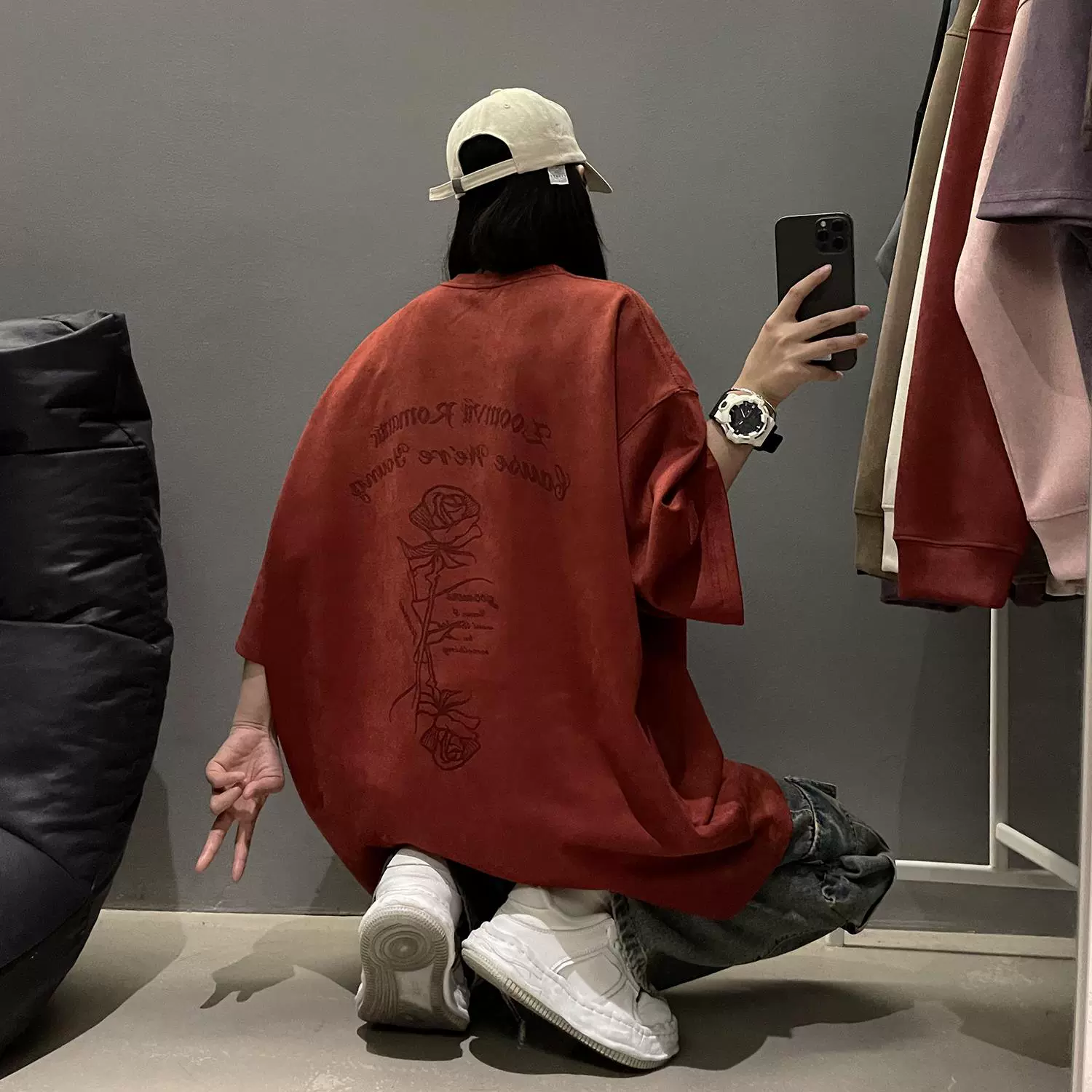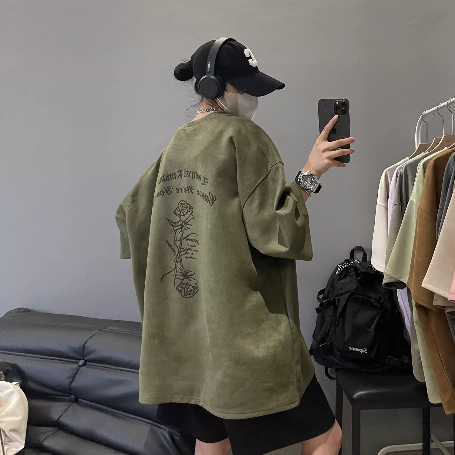 Heavy oversize American high street half-sleeved suede