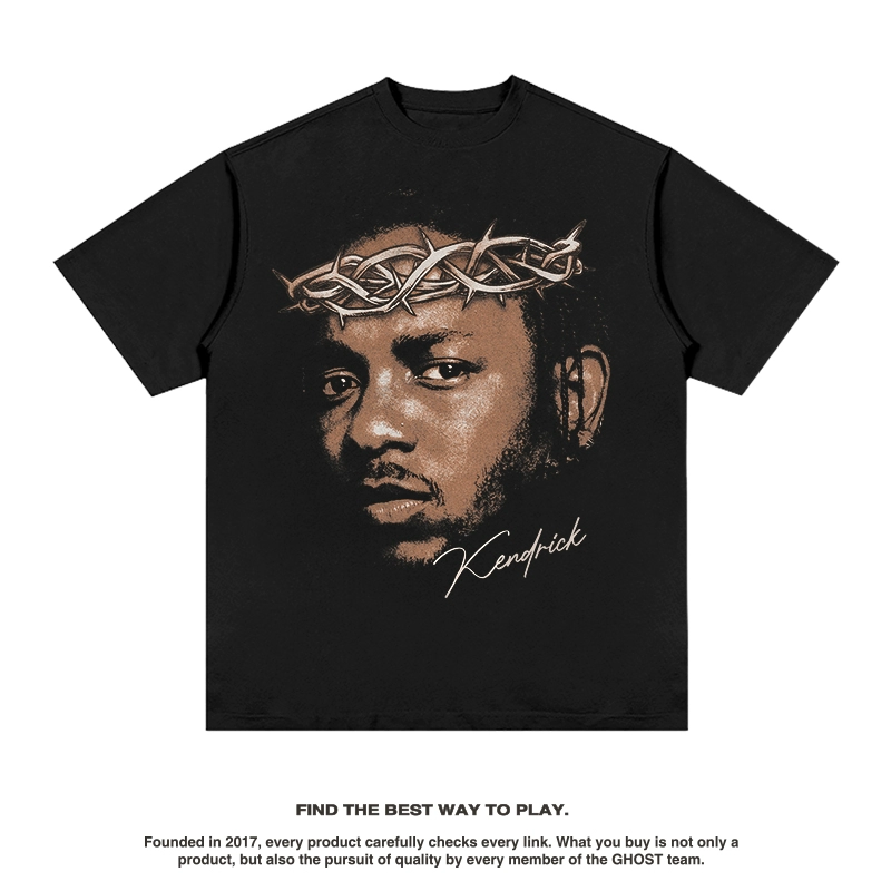 Heavy portrait print cotton round neck short-sleeved T-shirt
