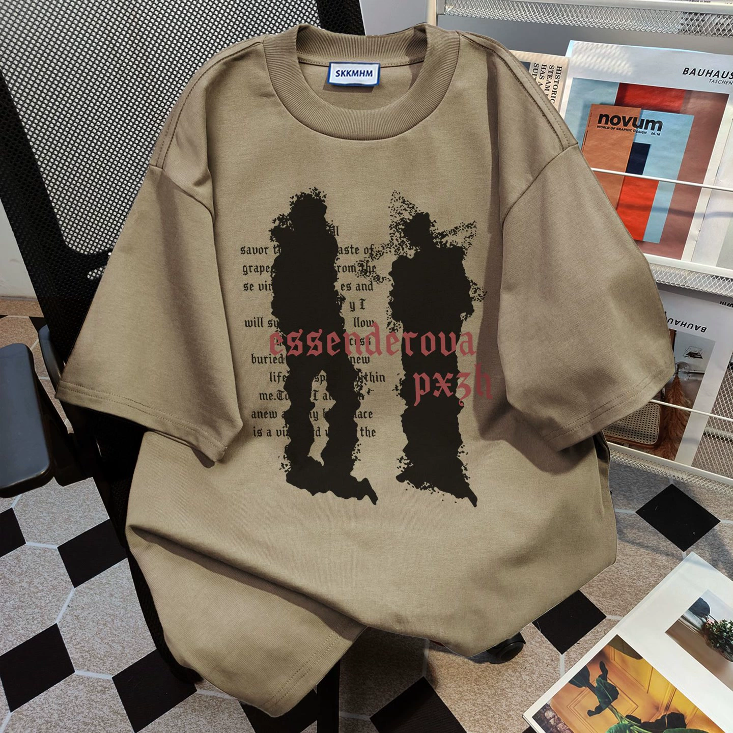 Heavy retro round neck slimming neutral style short-sleeved T-shirt