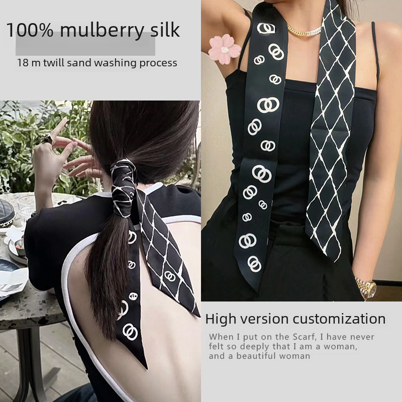 | nameOriginal | Heavy silk scarf small fragrance style long thin narrow tied bag ribbon decorative ribbon tie neck hair band Double C |