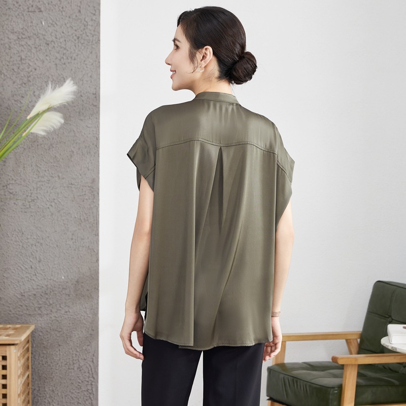 | nameOriginal | Heavy silk stand collar shirt for women 2023 new French style shirt short sleeve commuter mulberry silk top summer wholesale |