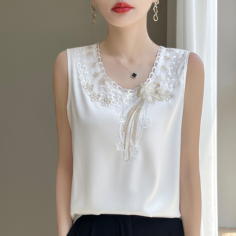 | nameOriginal | Heavy-weight Acetic Satin U-neck Vest Women's Loose Pullover Slim-fit Lace Suit with Phoenix Tail Embroidered Silk Sling |