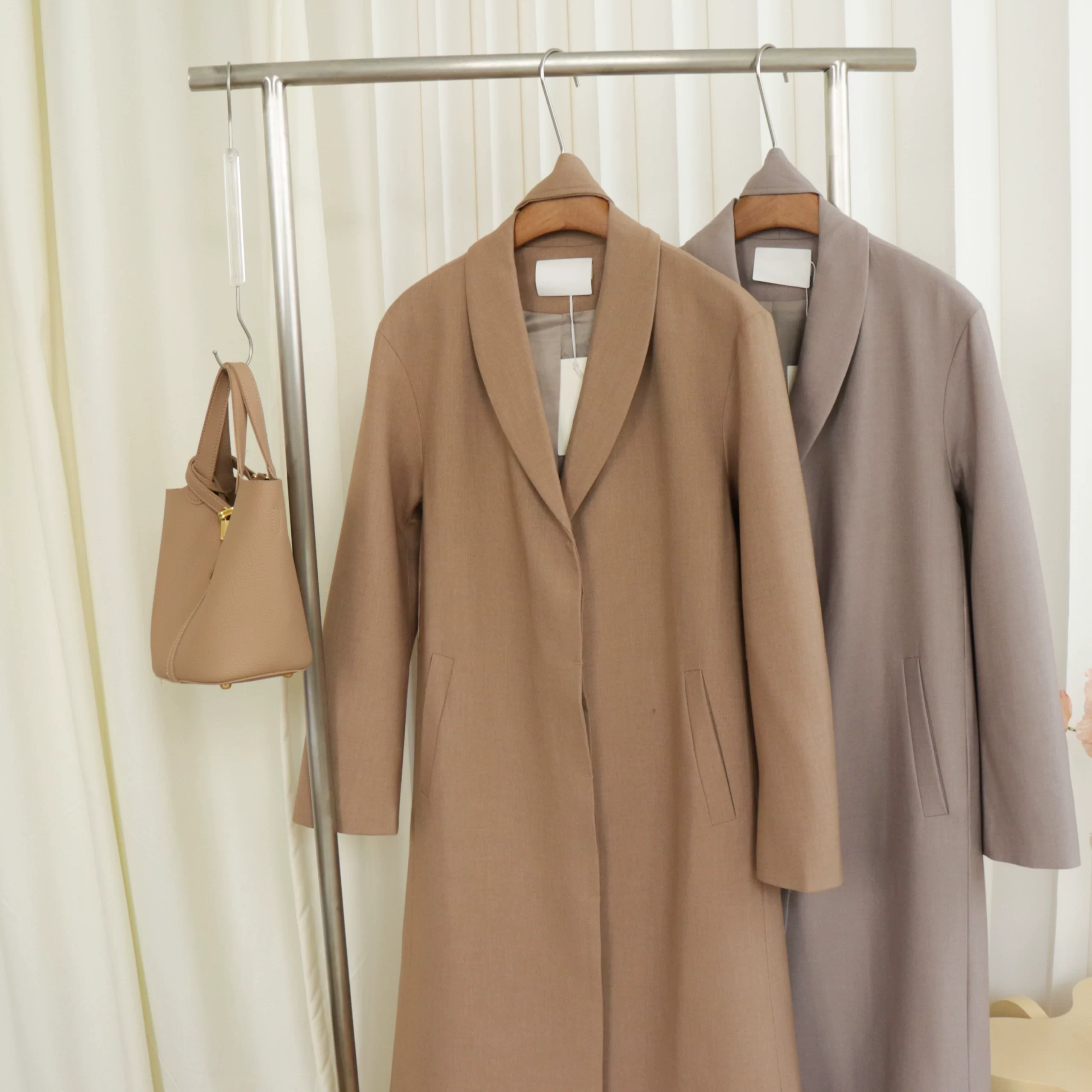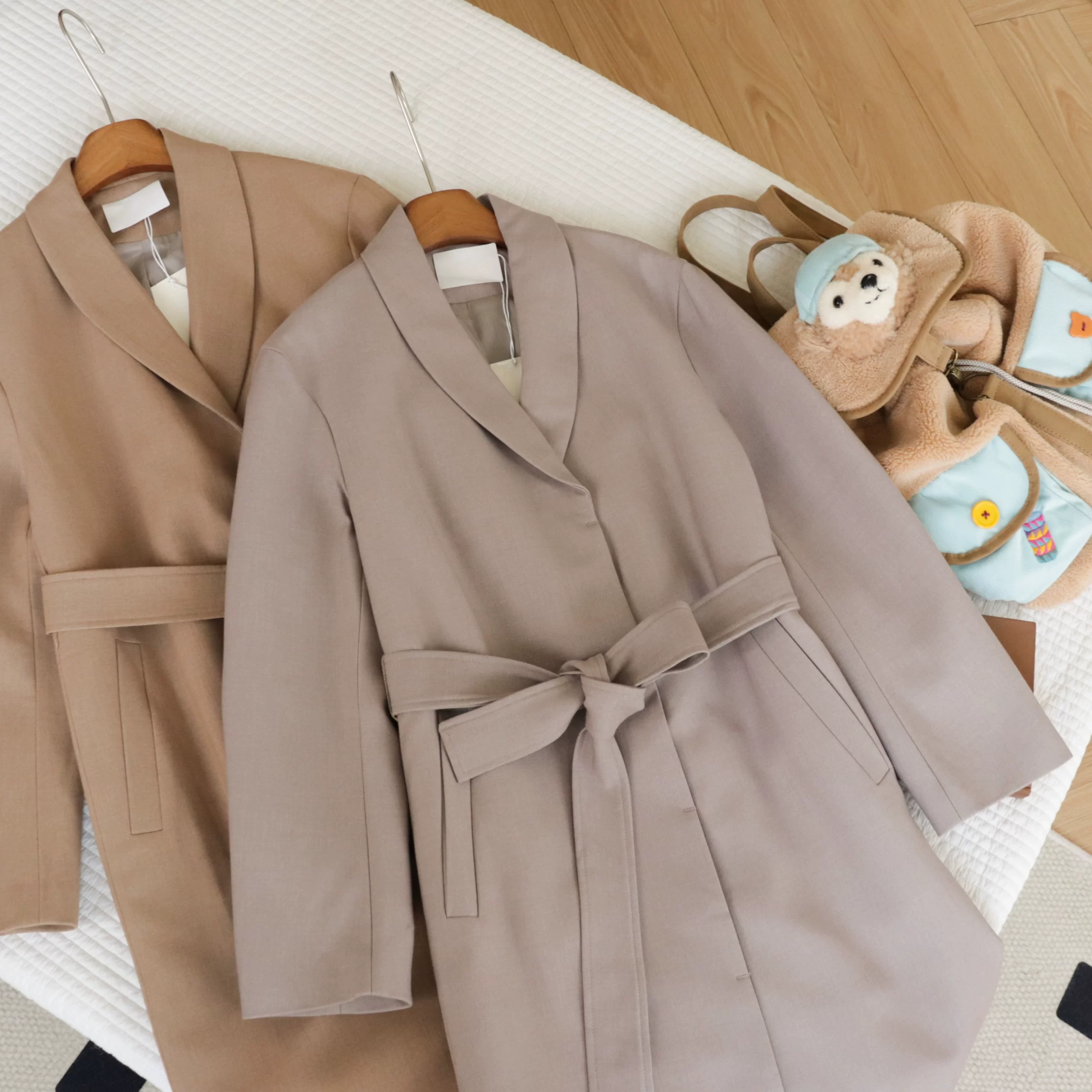 | nameOriginal | Heavyweight long suit jacket autumn and winter retro lapel to show temperament and design loose mid-length windbreaker for women E 8507 |