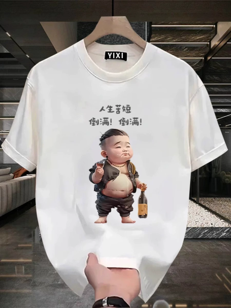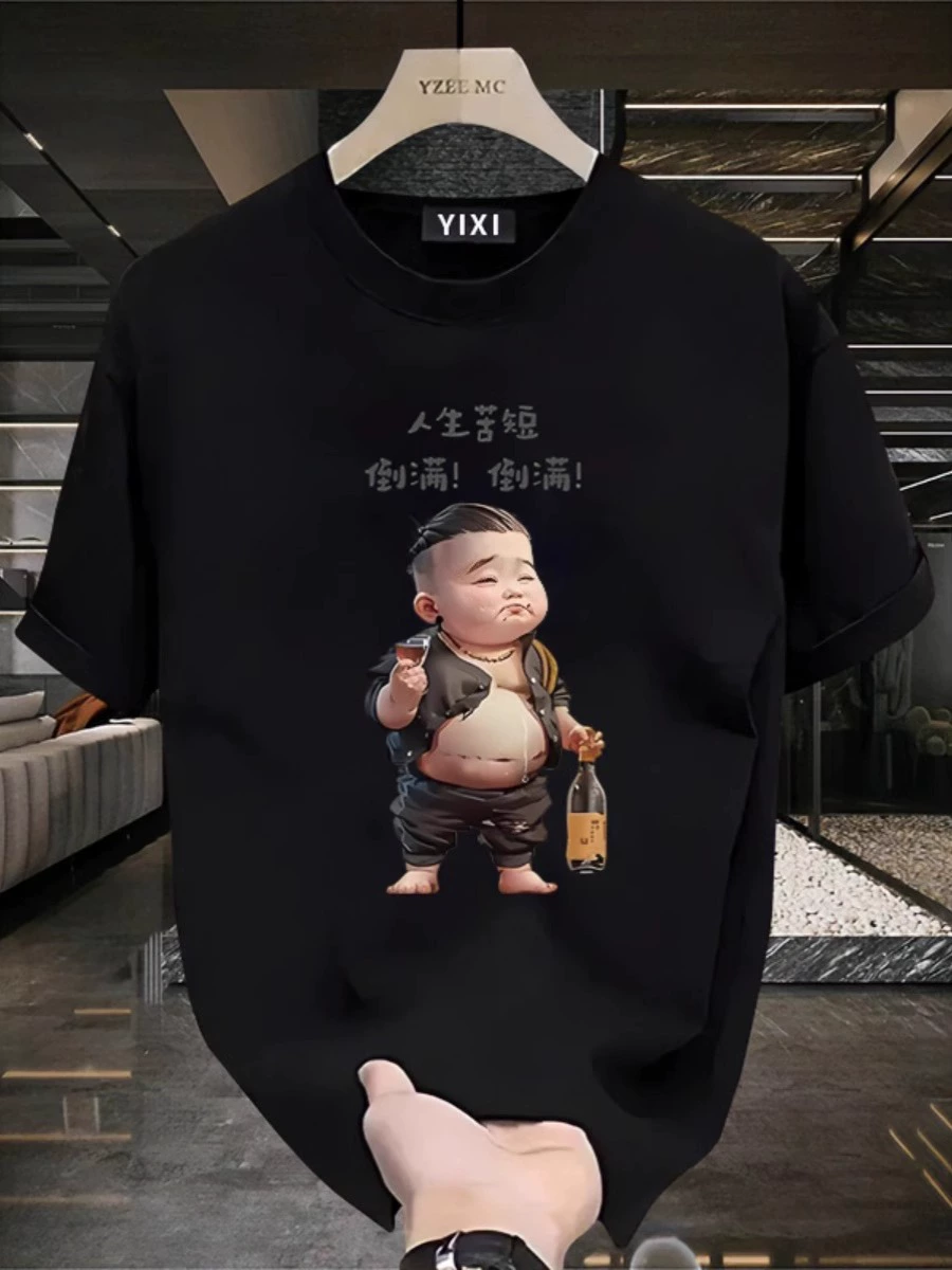 Heavy men and women, handsome, creative trendy short -sleeved T -shirt
