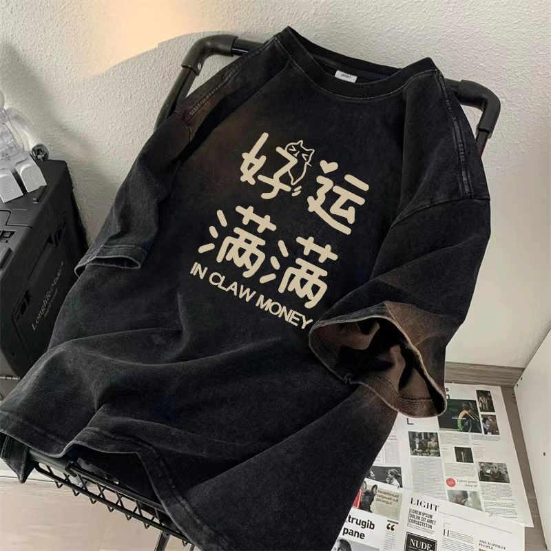 | nameOriginal | Heavyweight short-sleeved T-shirt for boys 2024 new ins trendy brand high street handsome loose and versatile washed and distressed top clothes |