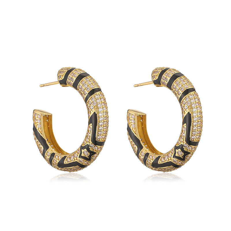 HECHENG Jewelry European and American Ins Snake Print Leopard Print Jewelry Set Niche Round Square Double Star Oil Dropping Earrings