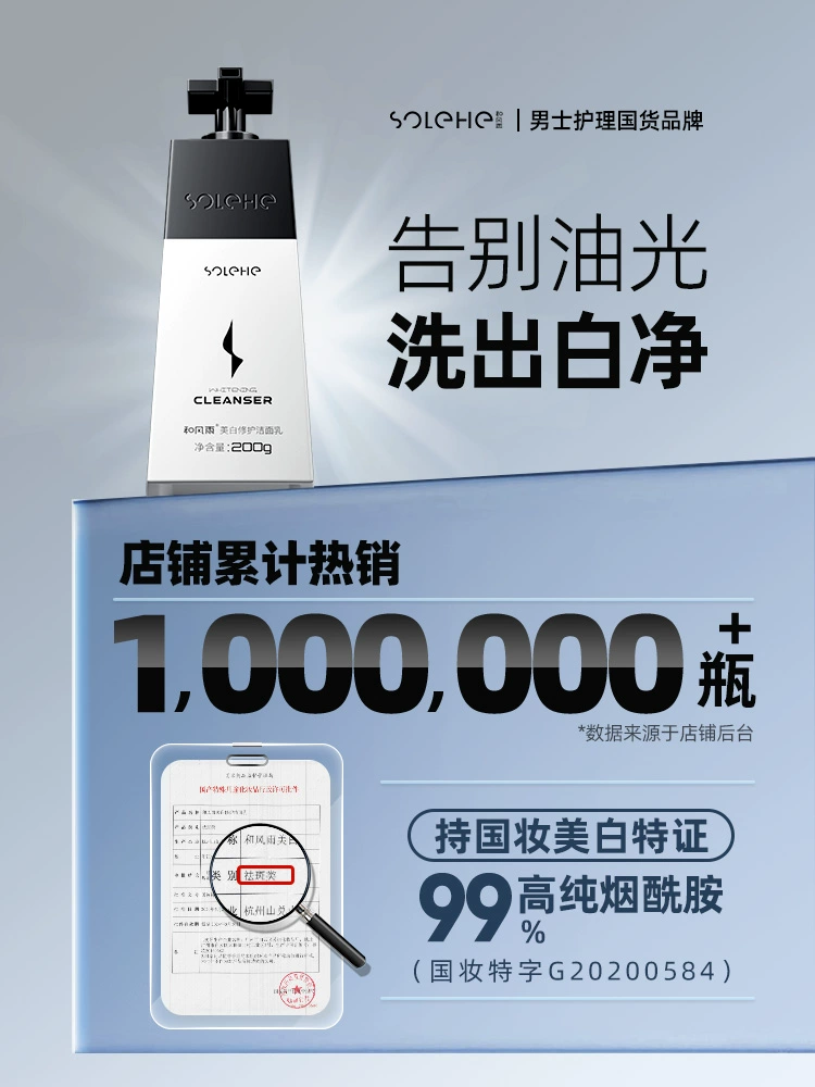 Hefengyu Facial Cleanser Men's Special Oil Control, Remove Blackheads, Remove Mites and Acne Whitening Facial Cleanser Skin Care Set