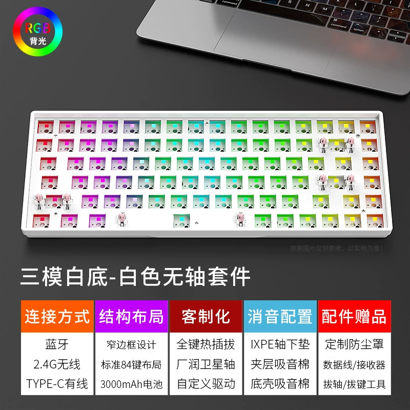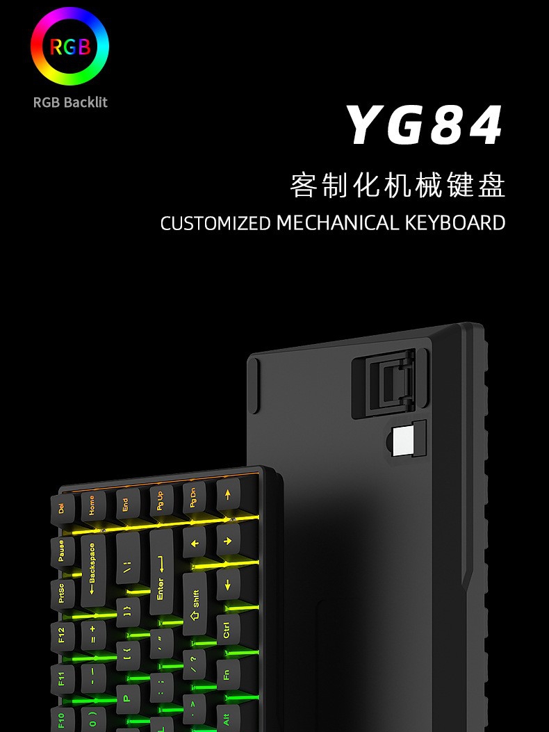 | nameOriginal | Heijishe new product YG84 keyboard mechanical kit RGB light Bluetooth three-mode 2.4G wireless wired e-sports game |