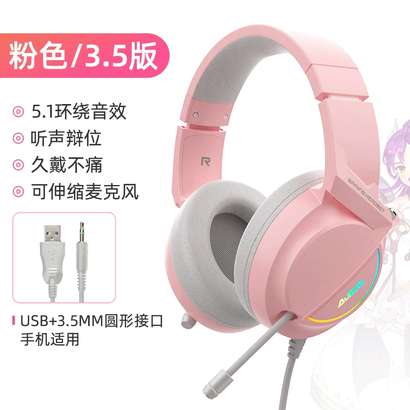 | nameOriginal | Heijue AX365 head-mounted pink gaming headset with heavy bass 7.1 listening e-sports game learning headset full cover |