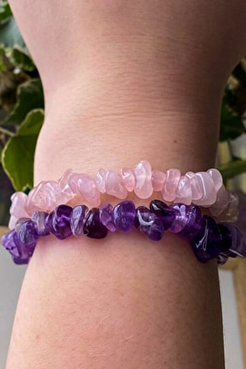 | nameOriginal | helenka accessory Amethyst And Pink Quartz Natural Stone Dual Stretchy Bracelet Set |