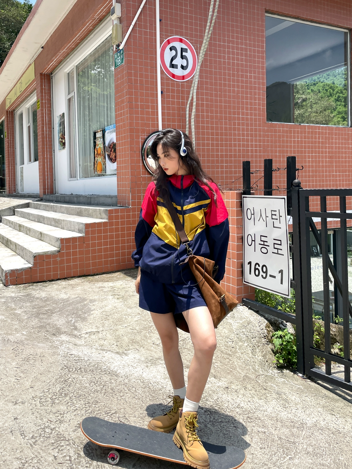 | nameOriginal | Hello Canon Sports Style Contrast Color Jacket Shorts Suit Women's Loose Casual Sweatshirt Wide Leg Pants Two-piece Autumn Set |