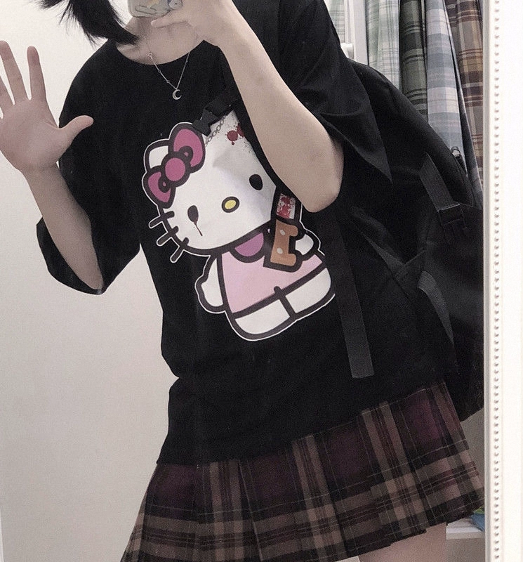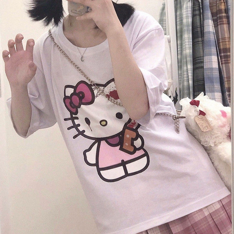 | nameOriginal | Hello Kitty Print White Short Sleeve T-Shirt New Cartoon |