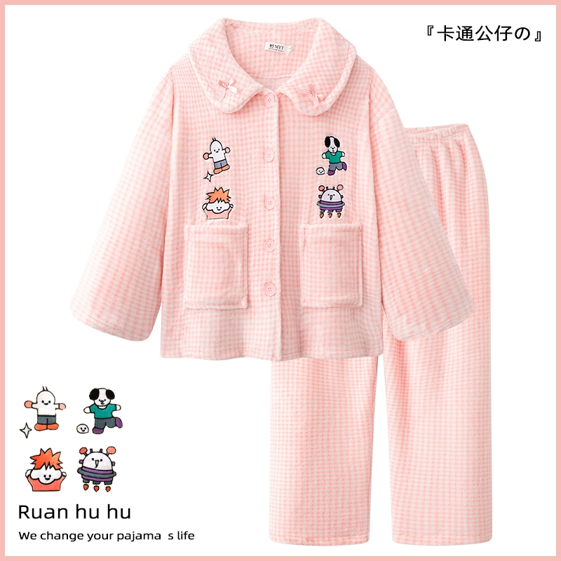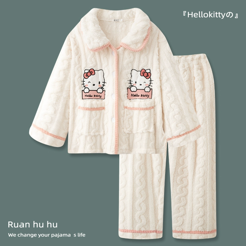 "Hellokitty" coral velvet pajamas for women, autumn and winter 2024 new thickened and velvet flannel home clothes