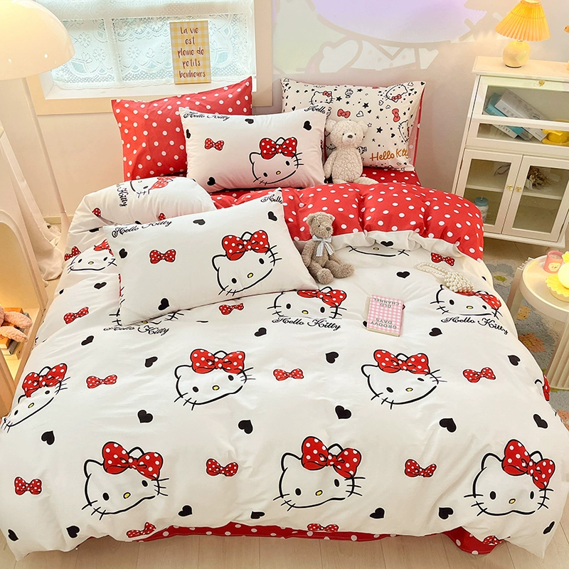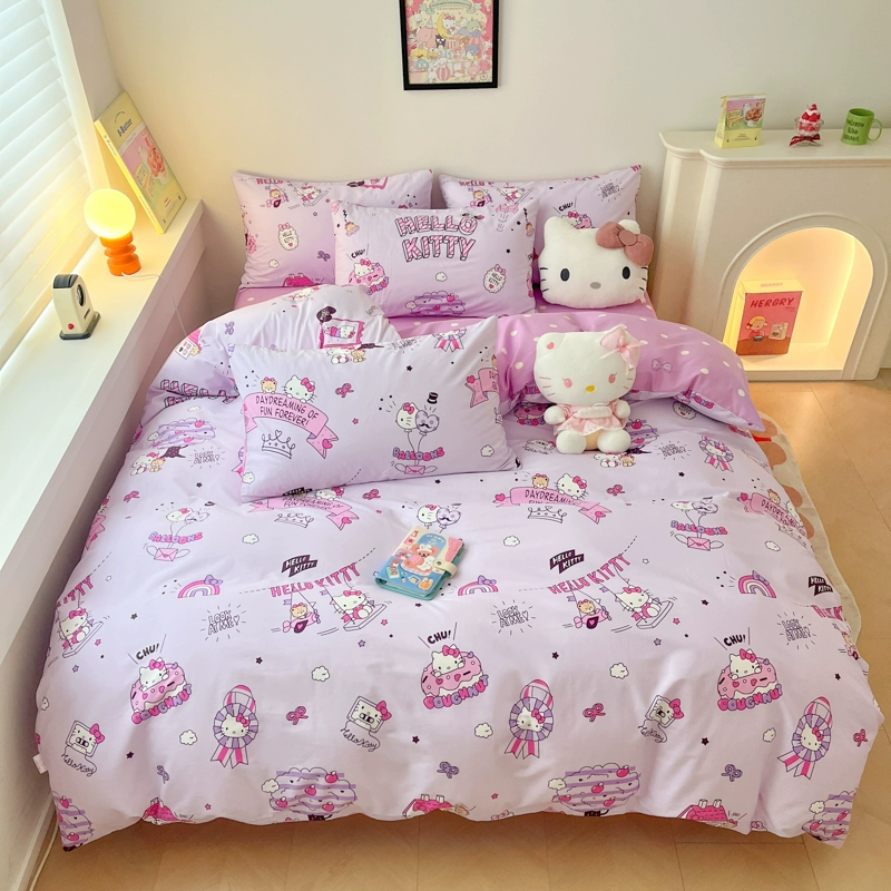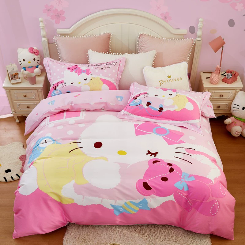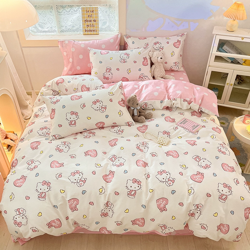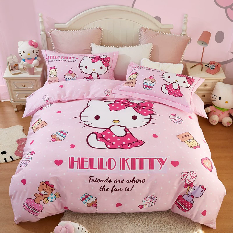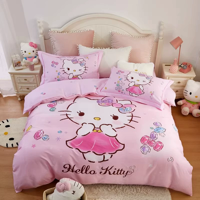 | nameOriginal | hellokitty cotton four-piece children's KT cat pure cotton quilt cover three-piece girl's pink fitted sheet set |