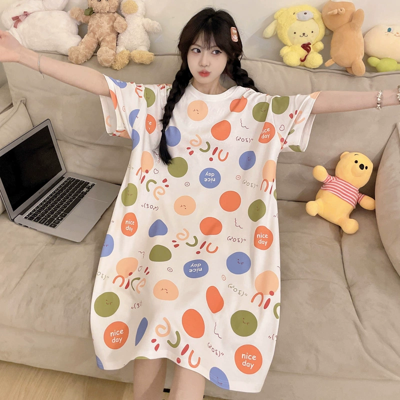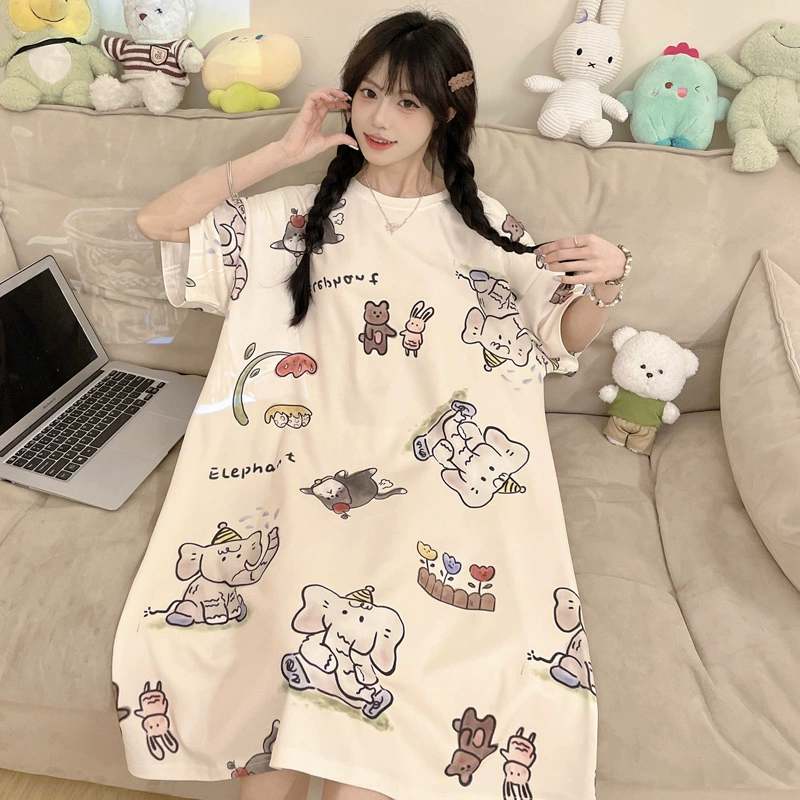 | nameOriginal | HelloKitty pajamas summer pure cotton short-sleeved thin girl nightgown large size fat mm cute cartoon pajamas dress |