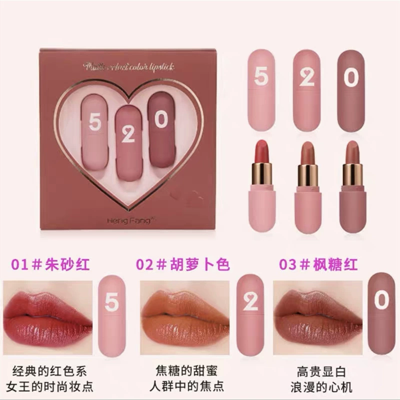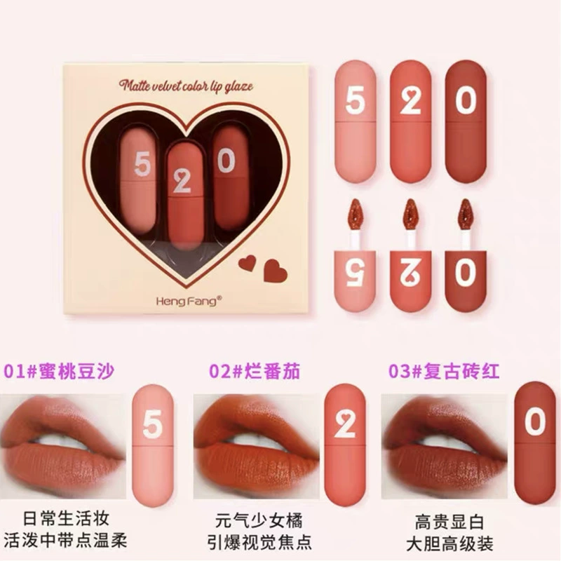 | nameOriginal | HENGFANG [Pack of 3] Mini capsule velvet lipstick and lip glaze set, matte matte surface, easy to color |
