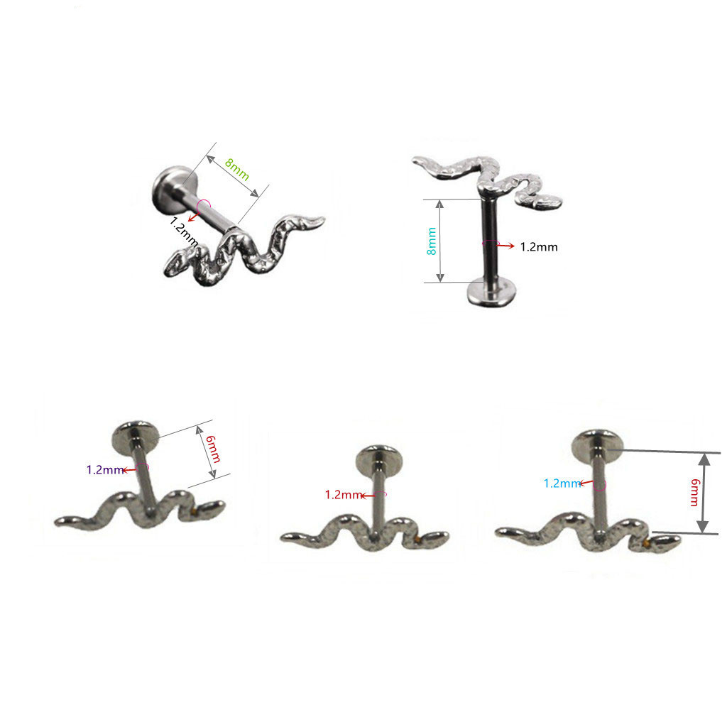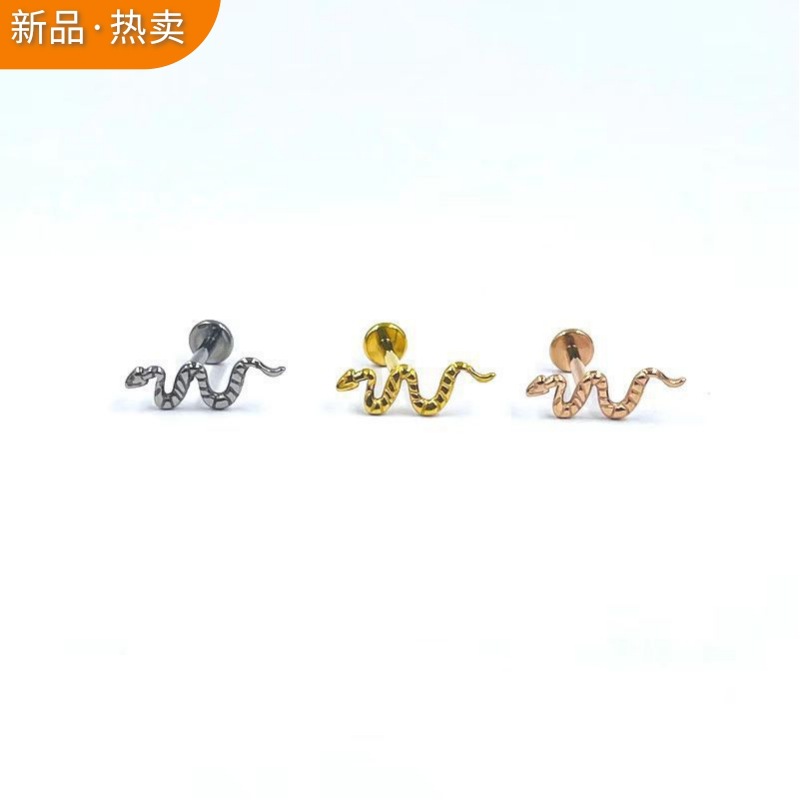 Hengya New Snake Piercing Tongue and Lip Nail Stainless Steel Thread Nose Nail Cross-border Hot Selling Ear Bone Nail Exotic