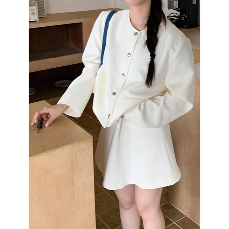 Hengyi Korean ins style exquisite Chanel style skirt suit spring new round neck short coat + skirt