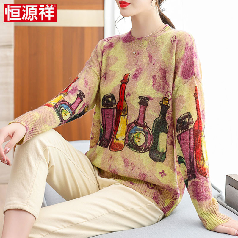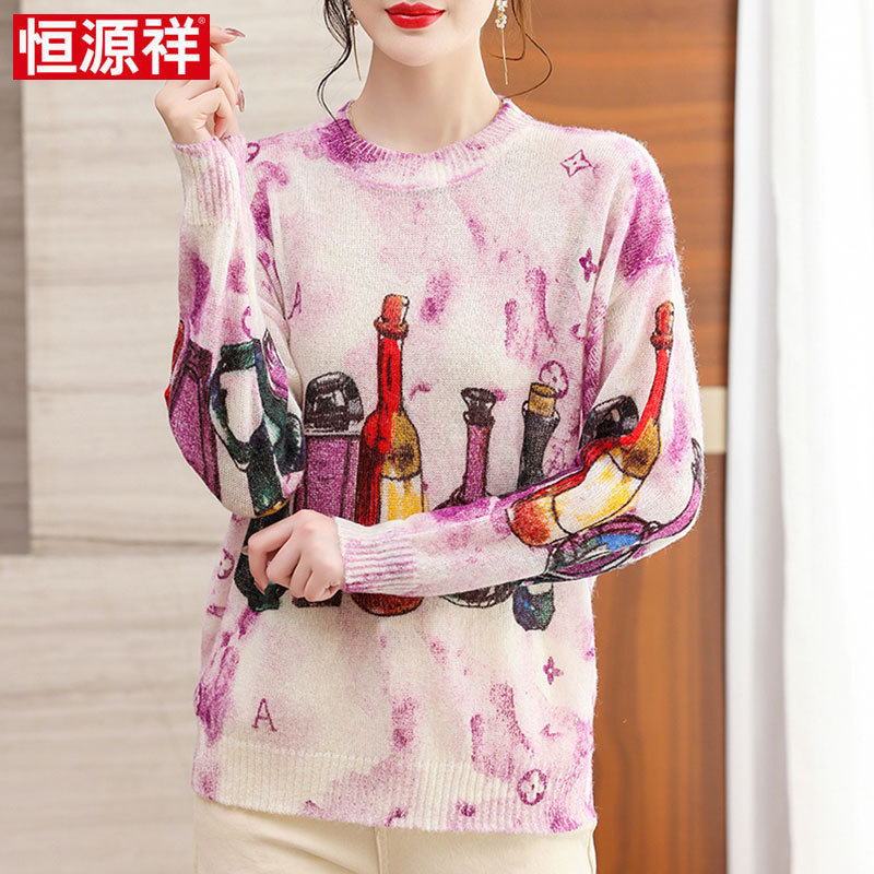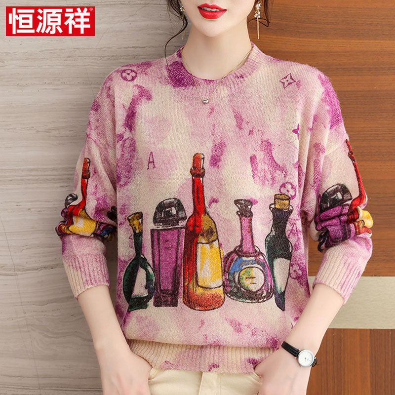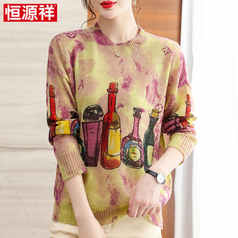 | nameOriginal | Hengyuanxiang autumn printed wool sweater women's middle-aged mother's top 2023 new long sleeve loose base |