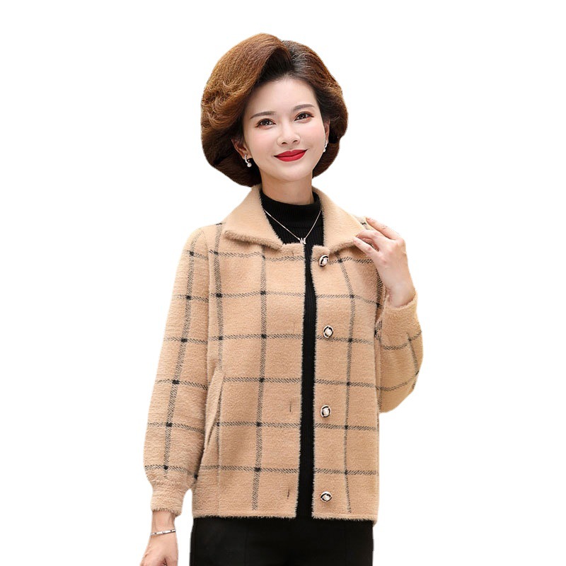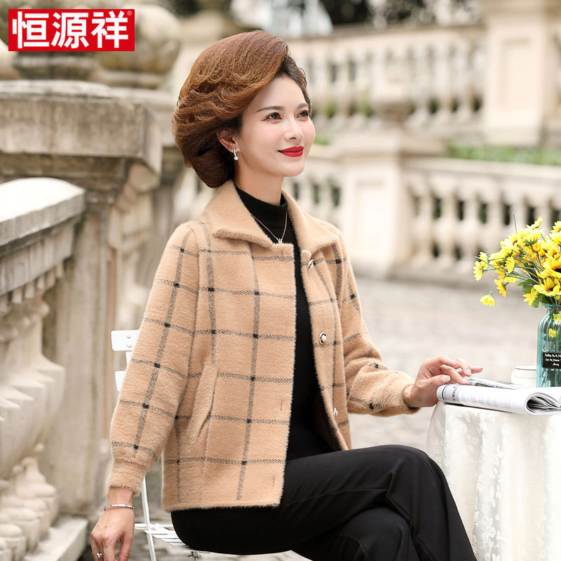 | nameOriginal | Hengyuanxiang mom autumn and winter mink fleece coat new middle-aged women's fashionable plaid woolen coat |