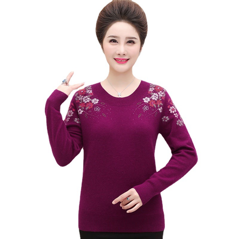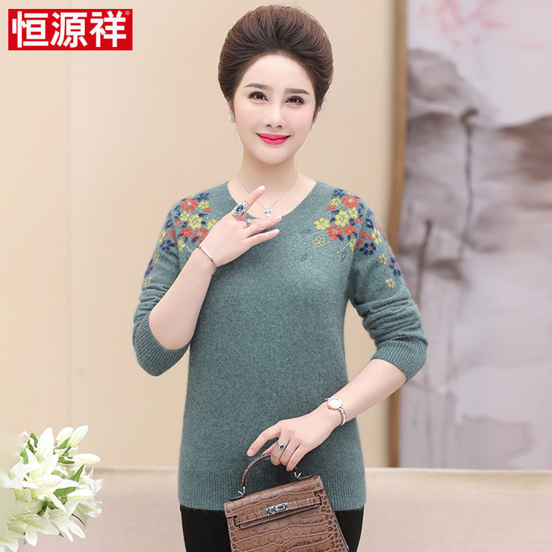 | nameOriginal | Hengyuanxiang pure wool women's T-shirt round neck embroidered fashionable mom's mink sweater winter warm bottoming |