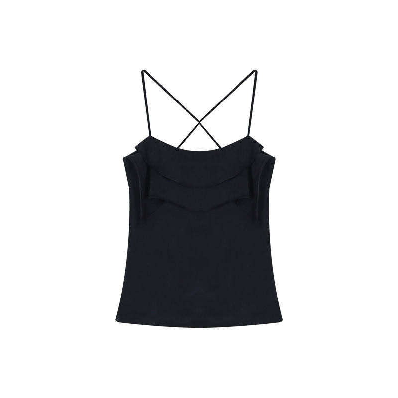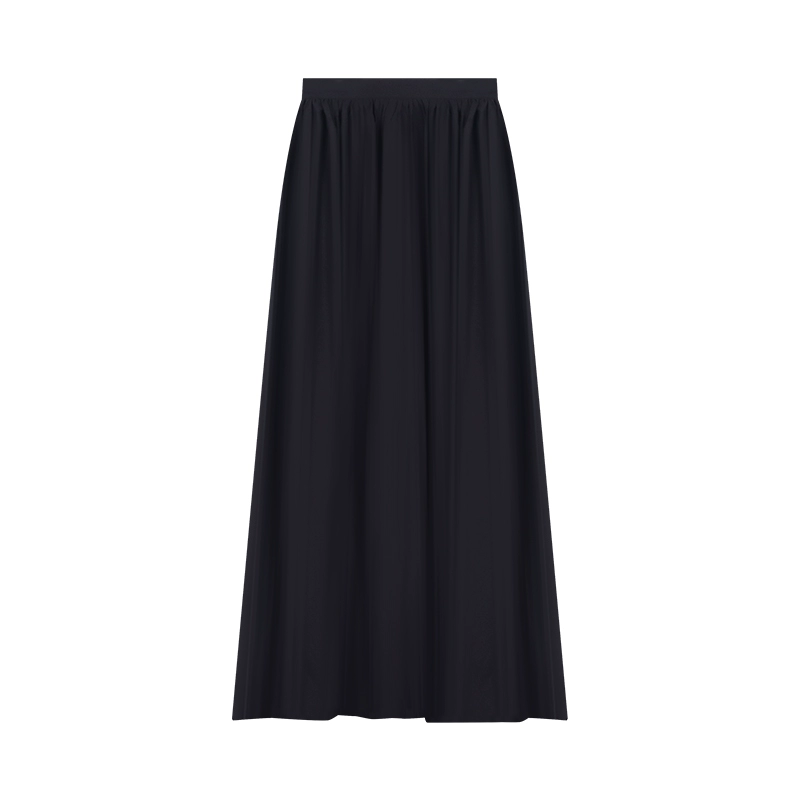 Hepburn style black ruffled A-line long skirt with small suspenders