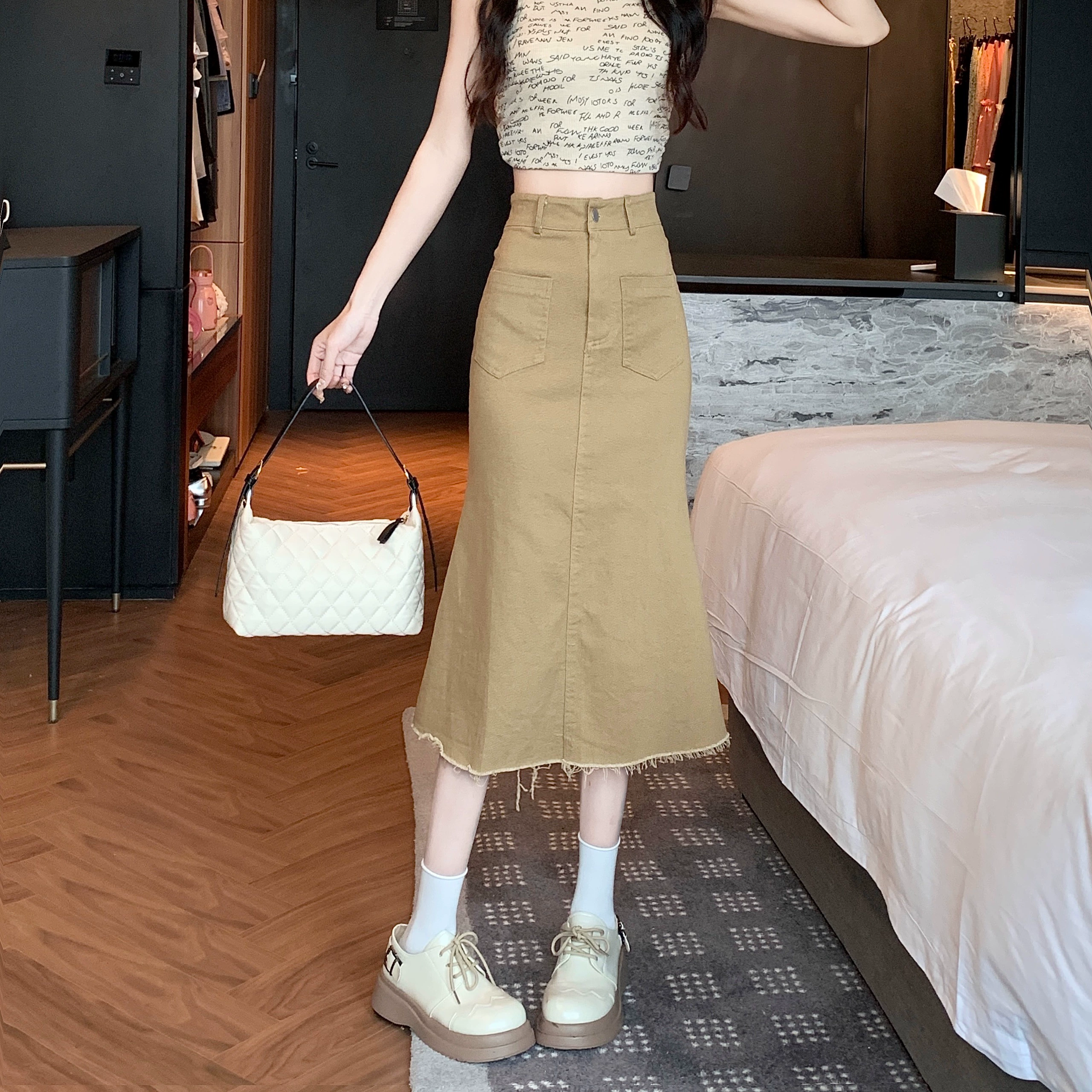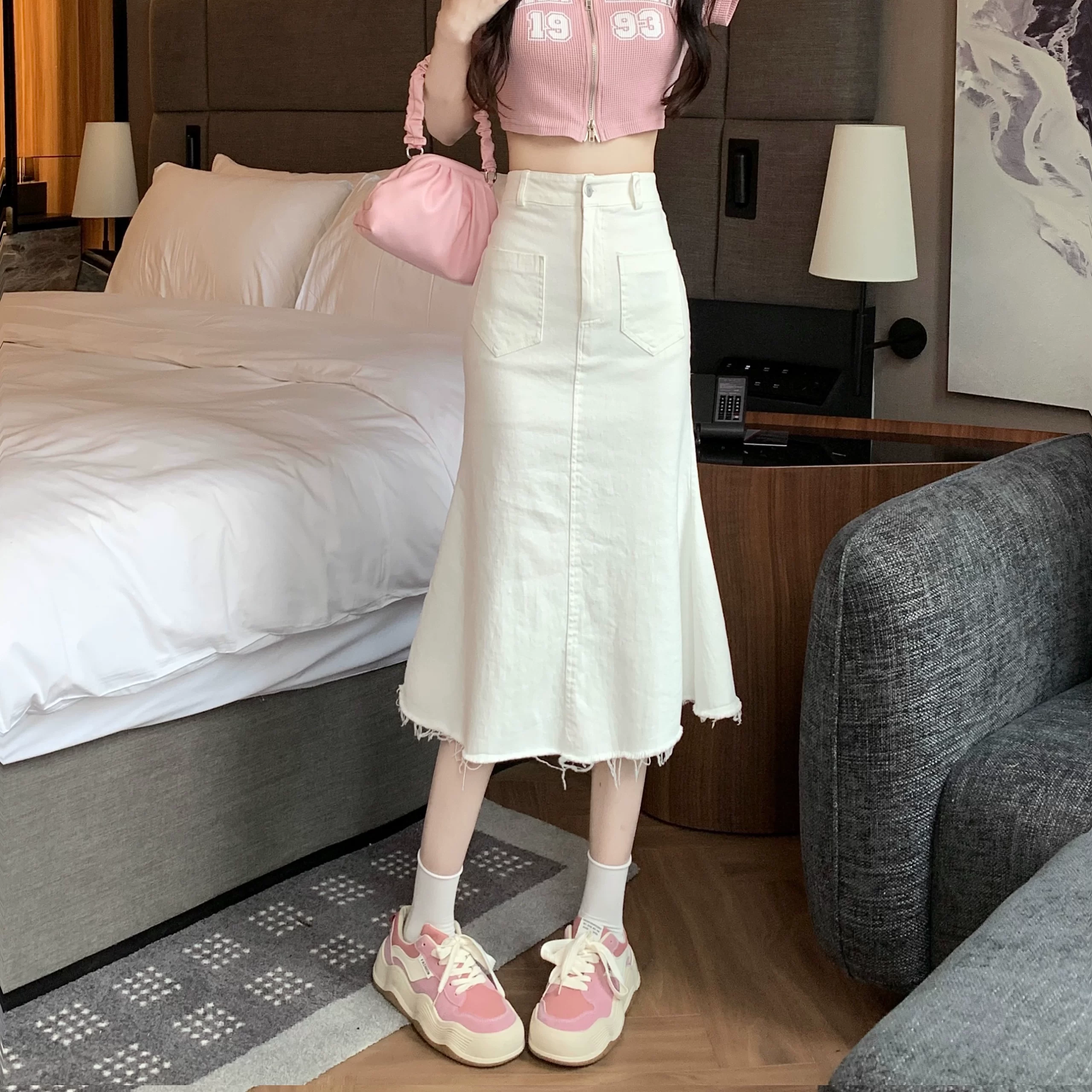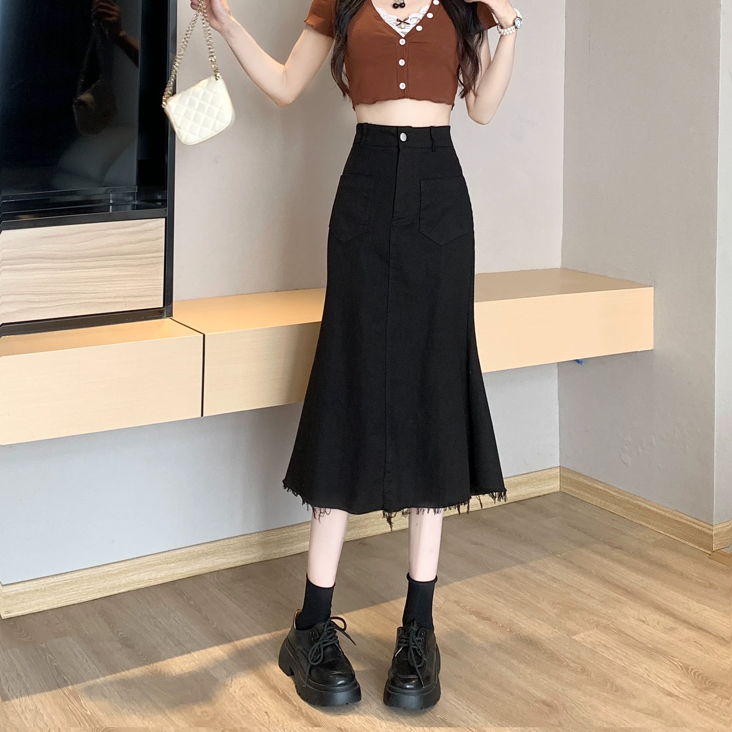| nameOriginal | Hepburn style denim skirt mid-length hip-hugging fishtail |