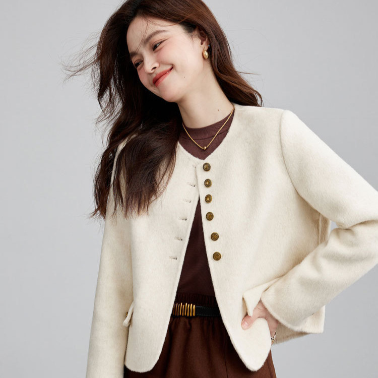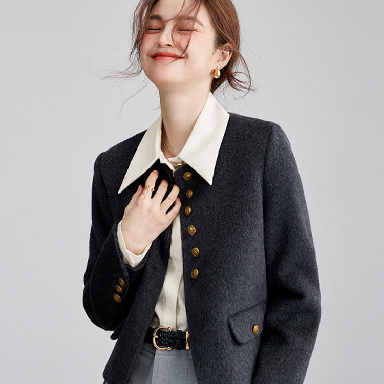 | nameOriginal | Hepburn style double-sided tweed 2024 spring new zero cashmere coat women's short feeling gray wool coat |