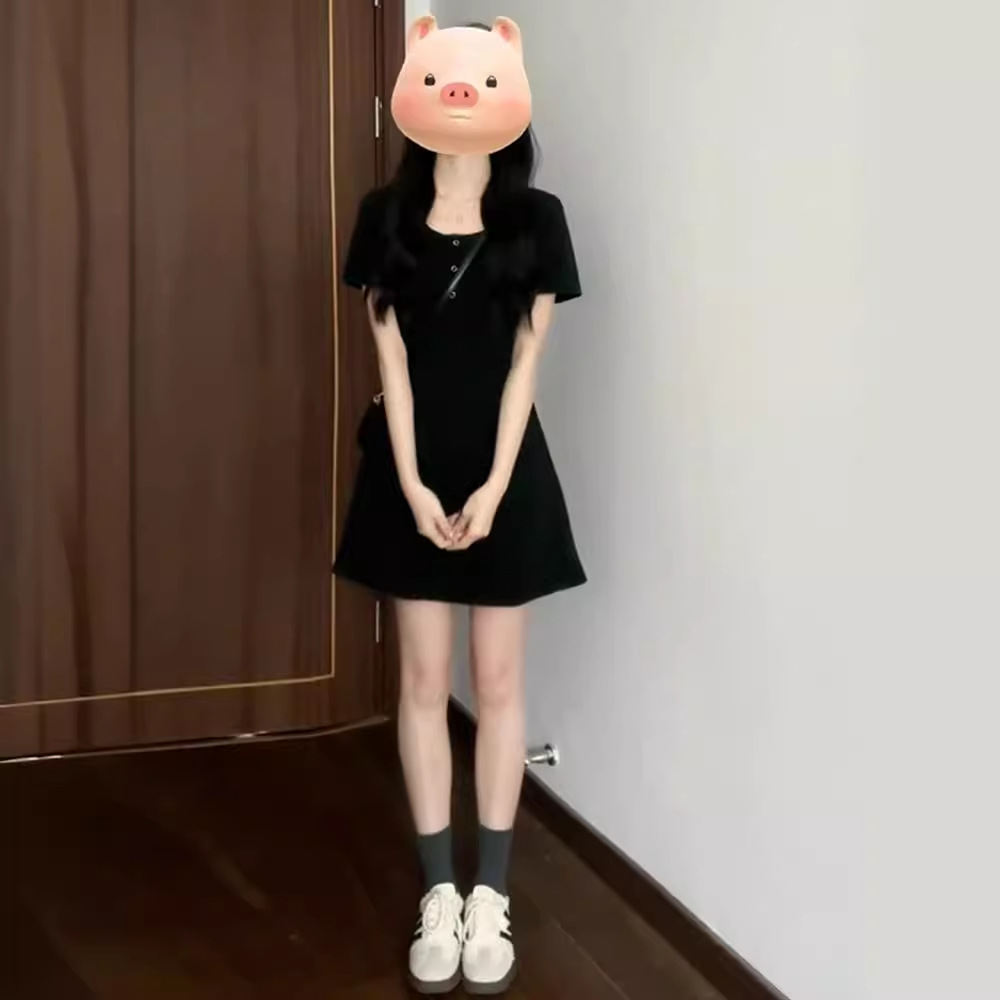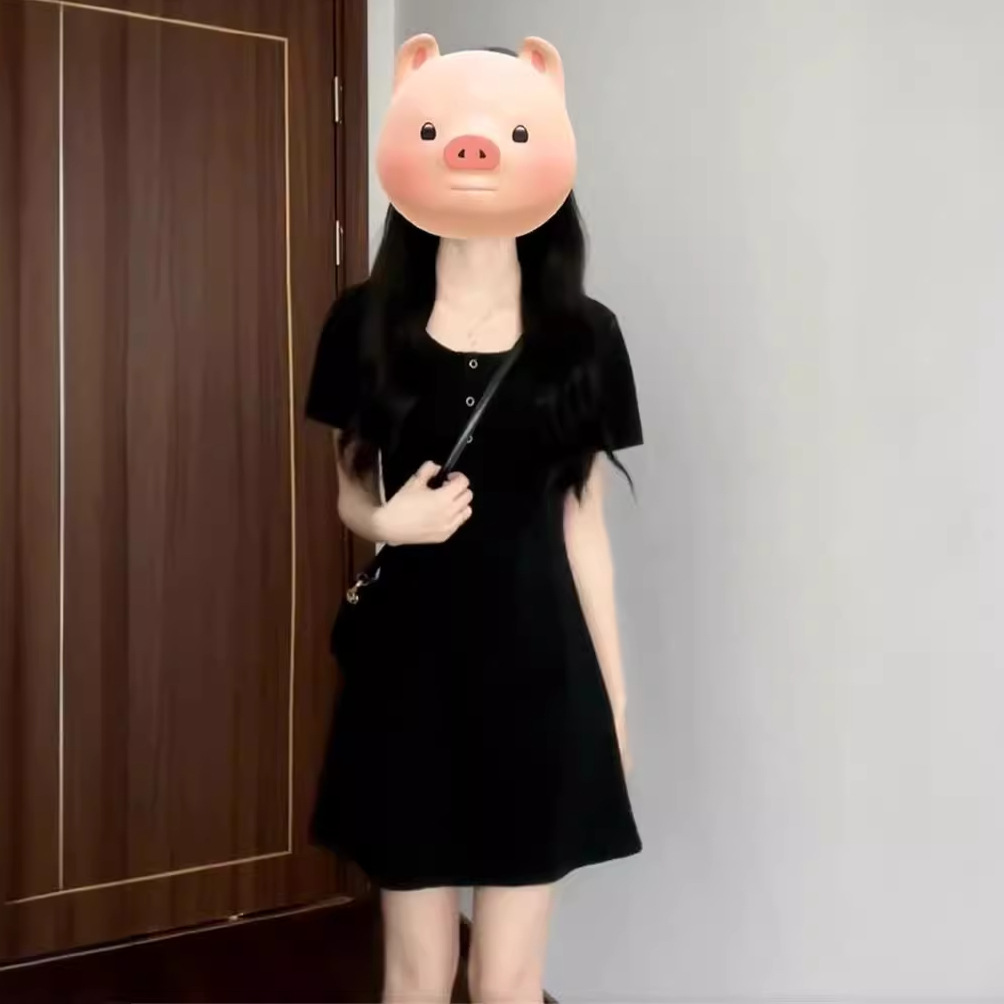Hepburn Style French Style Elegant Square Collar Black dress Women's Summer 2024 New Arrival Small Hip A- Line Skirt