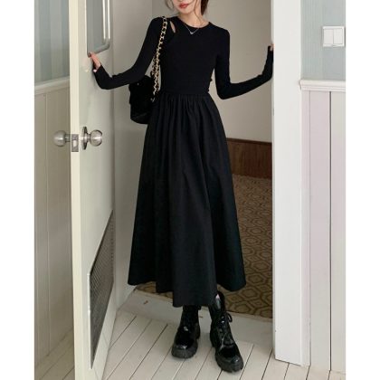 | nameOriginal | Hepburn style hollow-out knitted long sleeve dress Women's Spring and Autumn new design sense niche temperament slim slimming dress |