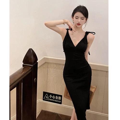 | nameOriginal | Hepburn style little black dress, black V-neck halterneck, backless suspender dress, sexy and discreet hip skirt, high-end |