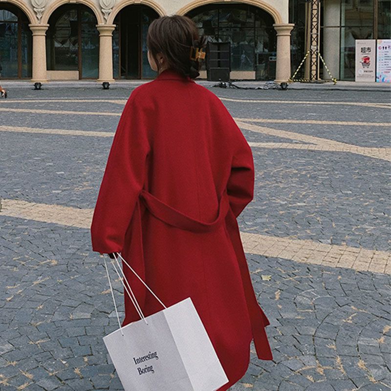 | nameOriginal | Hepburn style red woolen suit jacket Women's Mid-length 2023 Winter New elegant thickened woolen coat |