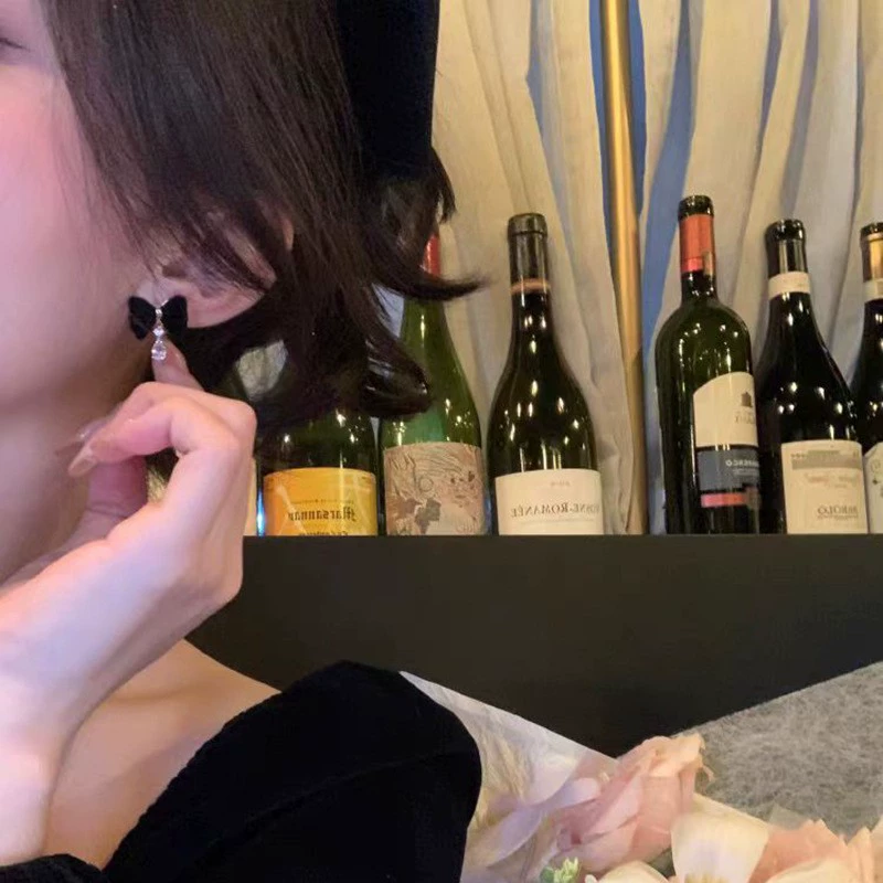 | nameOriginal | Hepburn style retro water drop earrings for women red bow velvet niche unique earrings temperament high-end earrings |