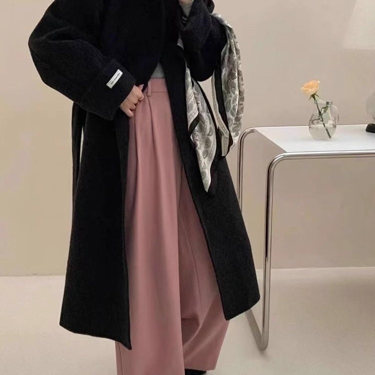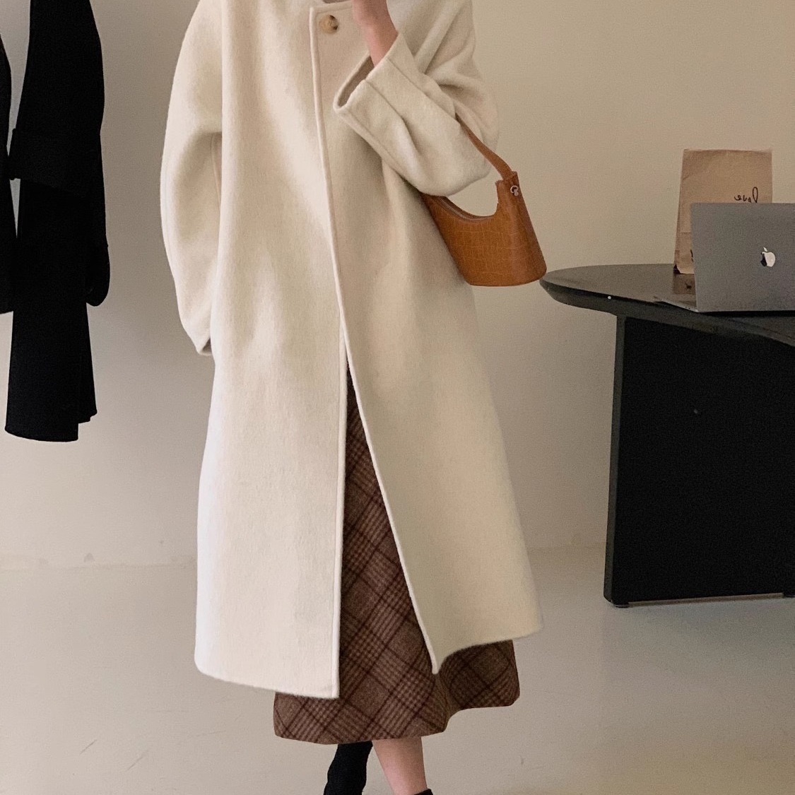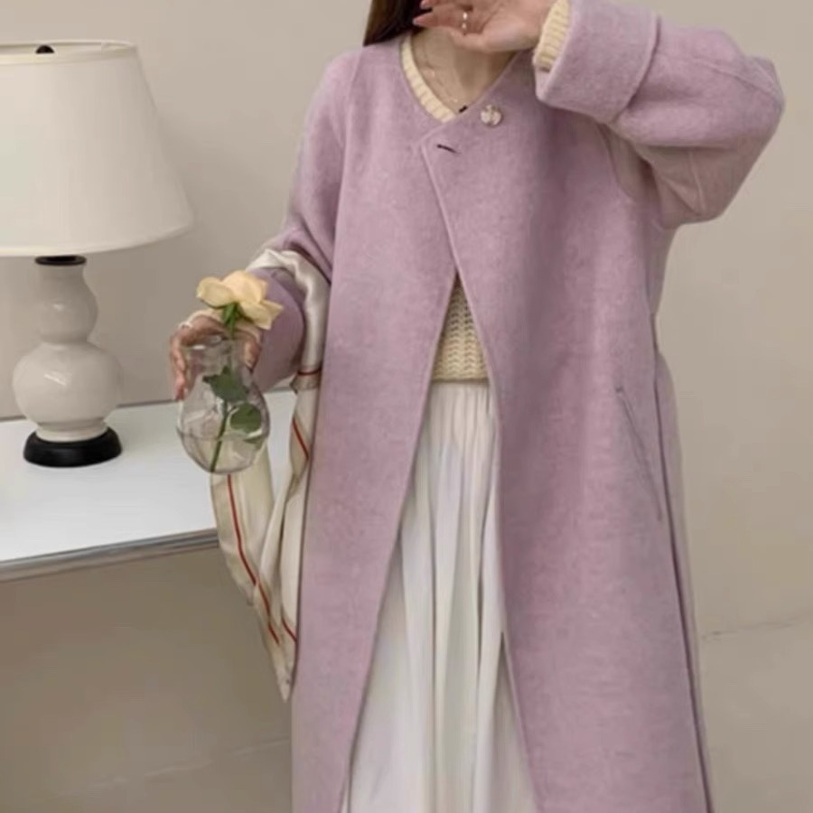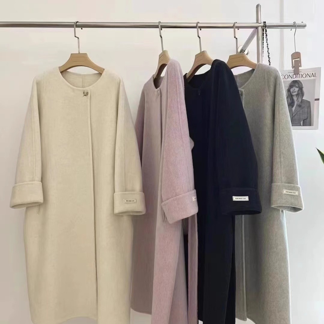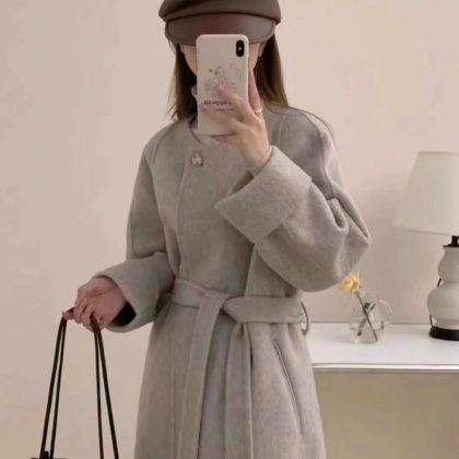 | nameOriginal | Hepburn style round neck double-sided wool coat long age-reducing plush thickened cashmere double-sided coat women's belt |