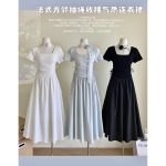 | nameOriginal | Hepburn style square collar blue waist slimming dress |