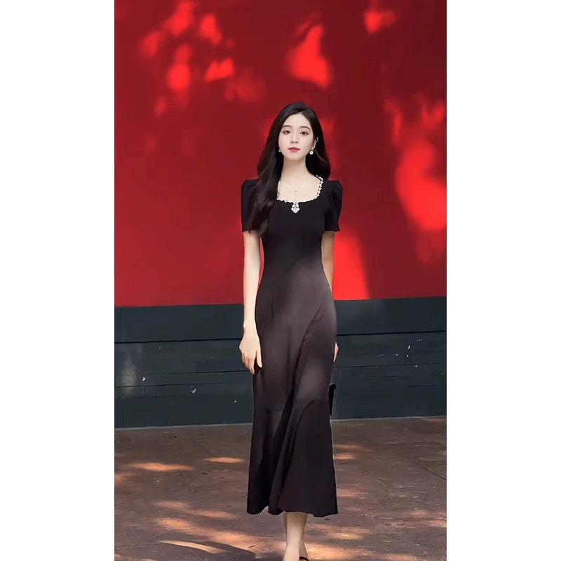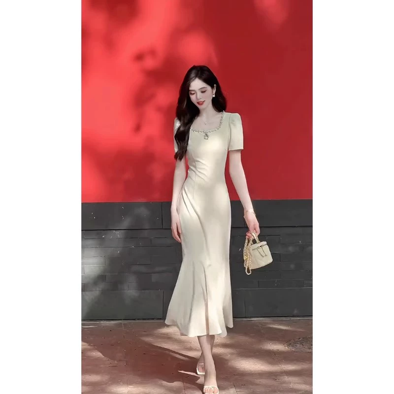 | nameOriginal | Hepburn Style Square Neck Short Sleeve Dress Women Elegant Waist Slimming Fishtail Skirt 2024 Summer Women's Long Skirt |