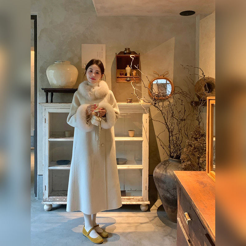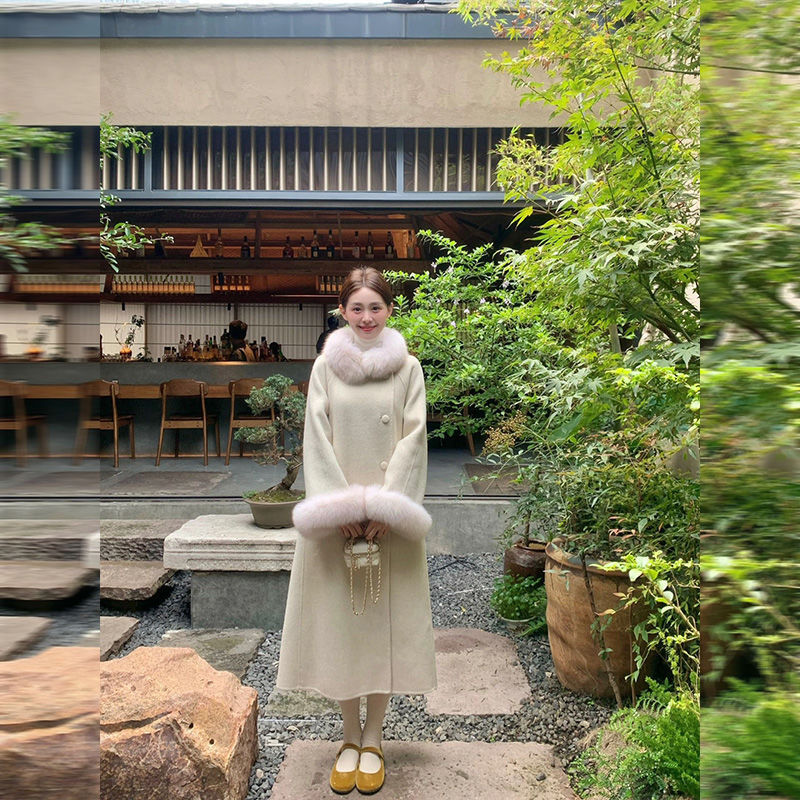 | nameOriginal | Hepburn style two-color woolen coat 2023 Winter new rich gold sense mid-length woolen coat |