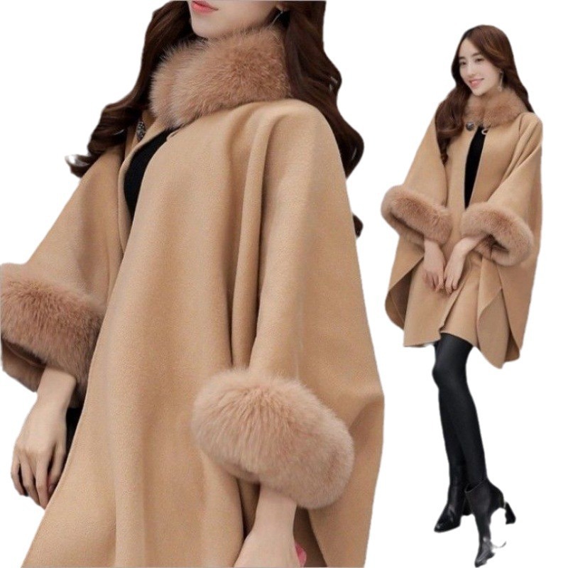 | nameOriginal | Hepburn-style Woolen Women's Autumn and Winter Mid-length Thickened Woolen Coat Imitation Rabbit Fur Collar Women's Women's Cloak Coat Women |