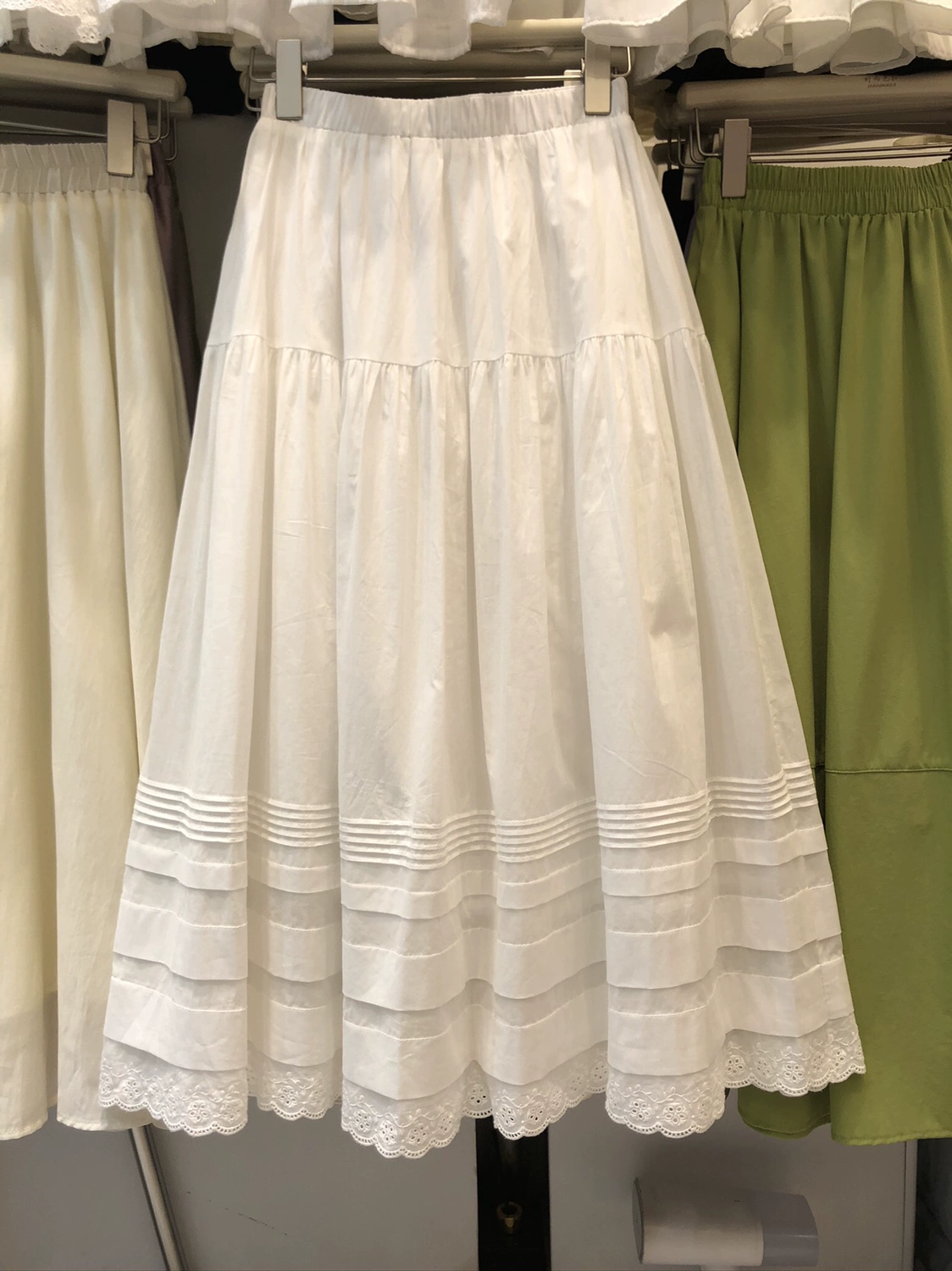 | nameOriginal | Hepburn umbrella skirt slimming fairy lace splicing white A-line skirt for women spring and summer mid-length versatile and exquisite skirt |