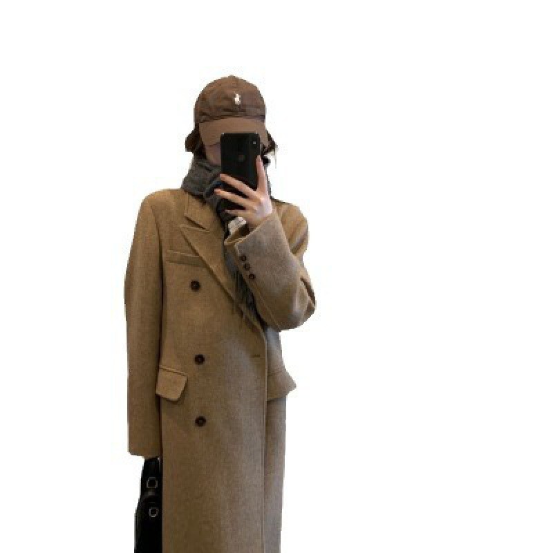 Hepburn woolen overcoat women’s small winter New Korean style mid-length thickened loose woolen overcoat