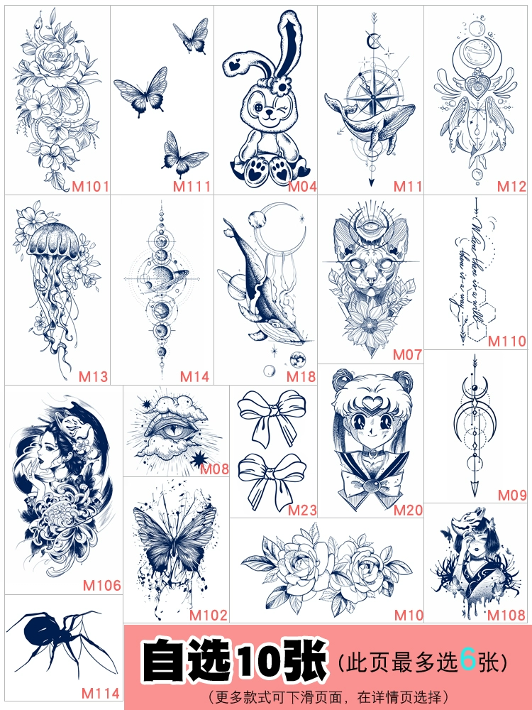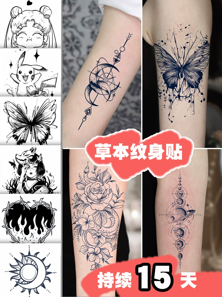 Herbal Tattoo Sticker Juice Semi-Permanent Indestructible Waterproof Long-lasting Flower Arm Non-Reflective Grass Simulation Sticker for Men and Women