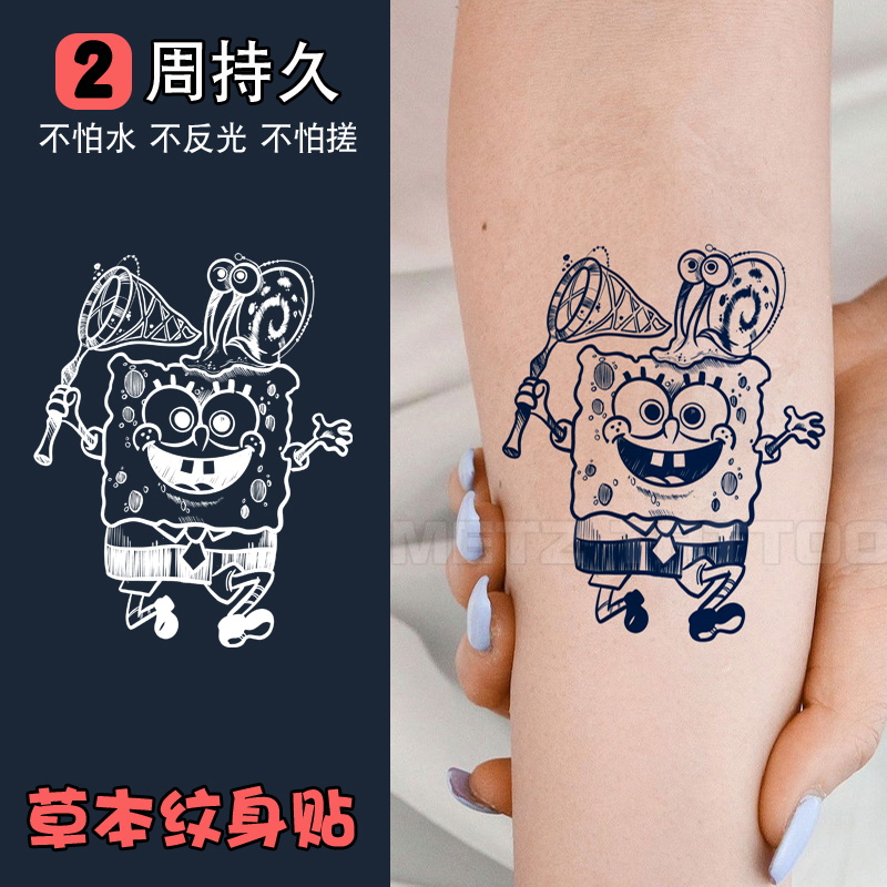 | nameOriginal | Herbal tattoo stickers juice long-lasting men and women waterproof semi-permanent non-reflective cute spongebob simulation ins style |