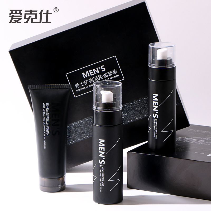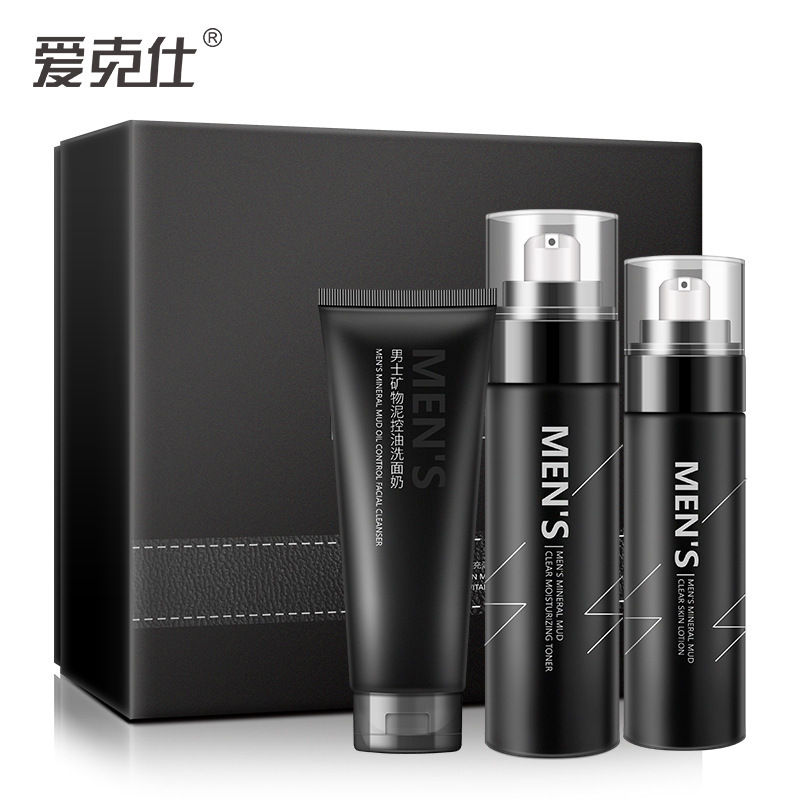 Herkes Men's Mineral Mud Skin Cleansing Three-piece Moisturizing Mild Oil Control Cleansing Pore Shrinking Skin Care Set